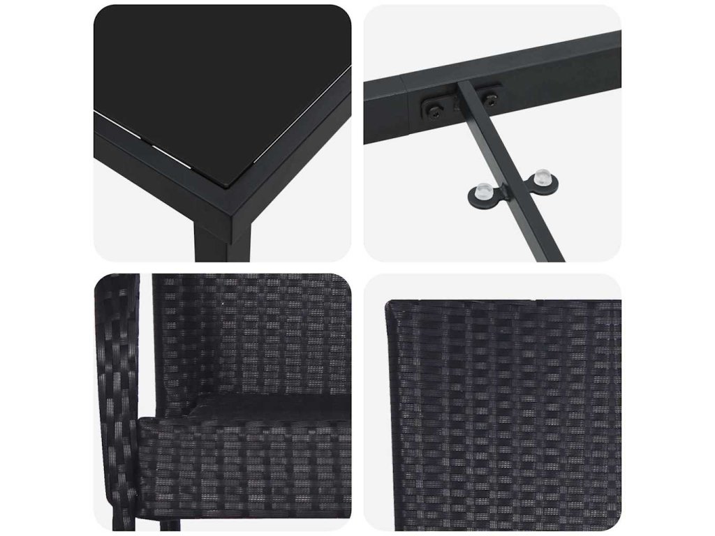 Tahle zahradní nábytková sada přináší moderní eleganci do vašeho venkovního prostoru. Je navržená tak, abyste si mohli pohodlně posedět venku, spojuje styl s praktičností. Moderní vzhled se skvěle hodí na balkóny, terasy nebo do zahrad a dodává jim elegantní atmosféru. Pozvěte kámošky a rodinu a užijte si jídlo, povídání nebo prostě jen relaxaci na slunci nebo pod hvězdami.