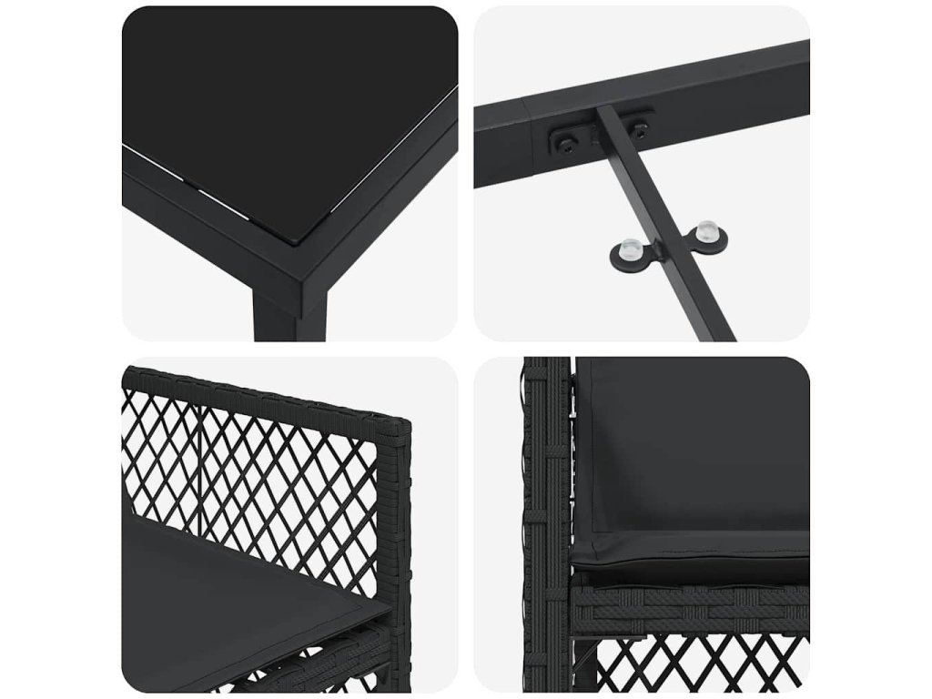 - Materiály: Vyrobený z poly ratanu, tenhle set je nejen hezký, ale taky pohodlný a odolný pro venkovní použití. Silný ocelový rám zajišťuje stabilitu a bezpečnost pro všechny příležitosti.