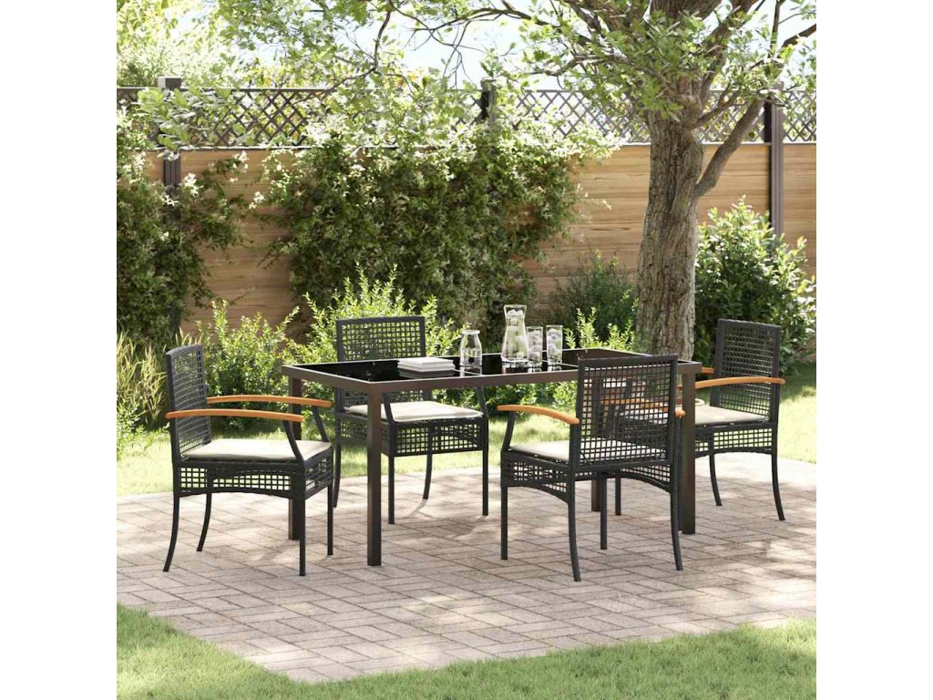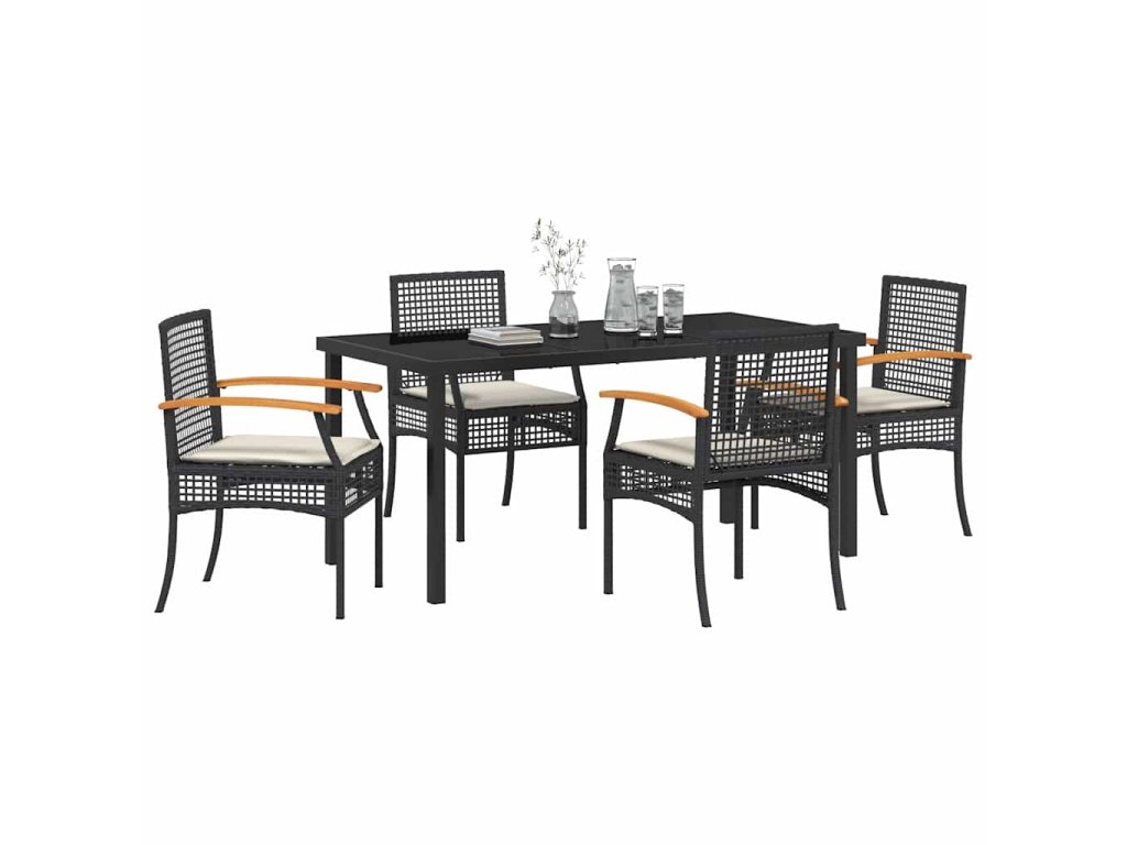 Zahradní jídelní souprava 5 pcs Černá polyratan 3380816