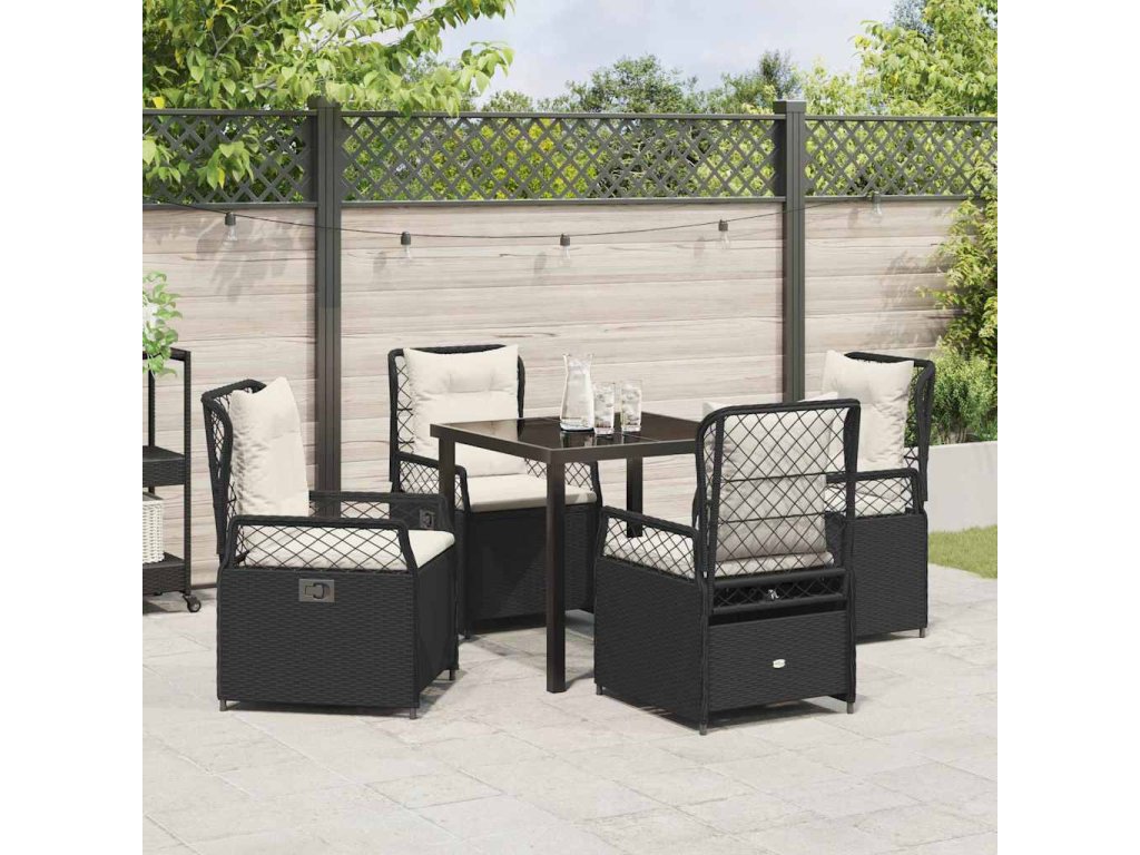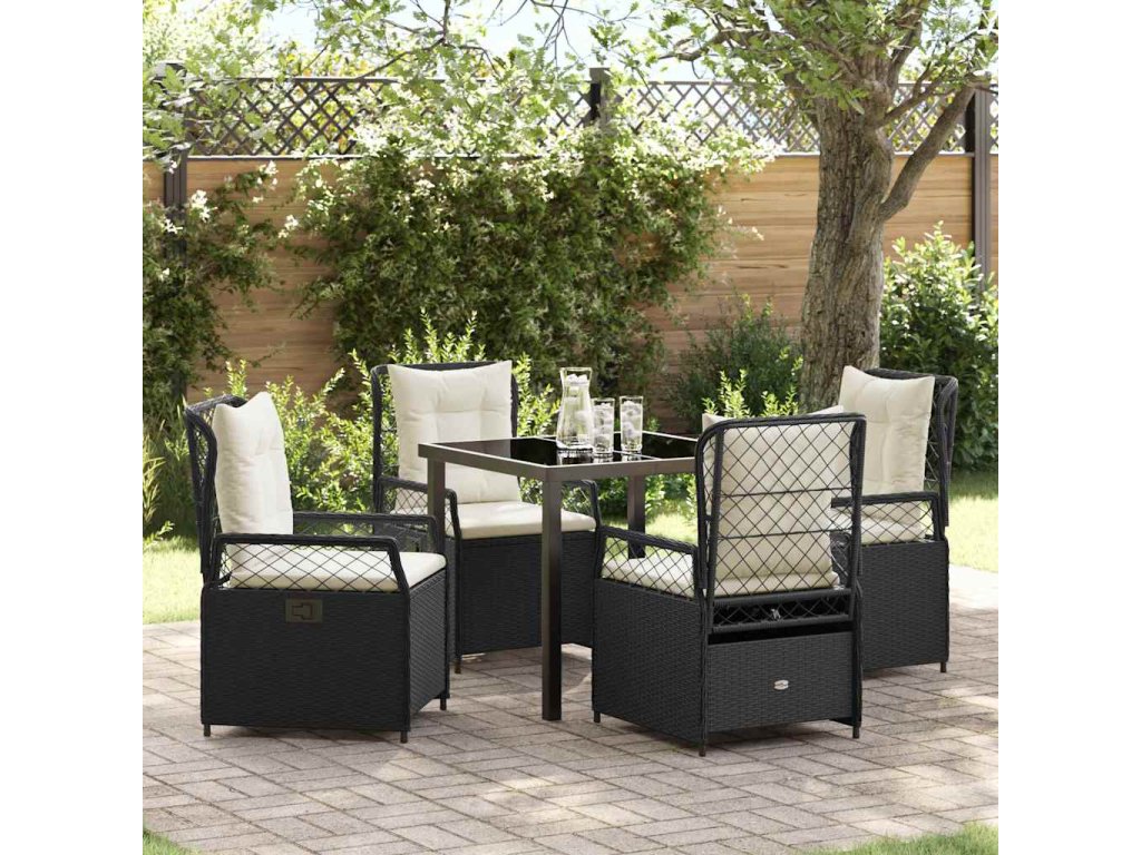 Zahradní jídelní souprava 5 pcs Černá polyratan 3380982