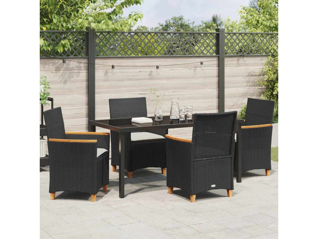Zahradní jídelní souprava 5 pcs Černá polyratan 3381089