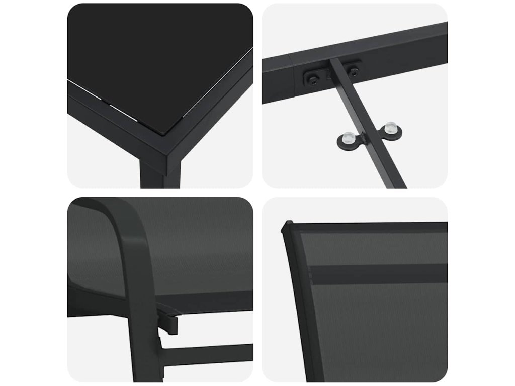 - Odolná konstrukce Vyrobený z práškově lakované oceli a tvrzeného skla, tenhle set má sílu i styl. Robustní ocelový rám poskytuje skvělou podporu, zatímco elegantní povrch tvrzeného skla dodává dotek třídy vašemu jídelnímu zážitku. Tyhle kvalitní materiály zajišťují, že set vydrží sezony a přidá eleganci vašim venkovním prostorům.