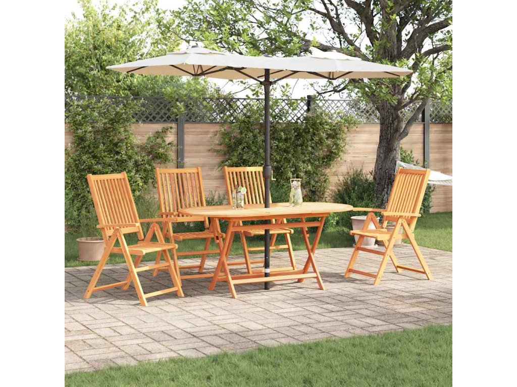 - Udržitelné akáciové dřevo: Vyroben zcela z masivního akáciového dřeva, zahradní jídelní set se pyšní přírodní hnědou barvou, která se bez námahy prolíná s venkovními tématy. Hustota a textura dřeva nejen zvyšují jeho estetickou přitažlivost, ale také zajišťují, že odolává prvkům, od žhnoucího slunce po občasné letní deště. To dělá ze setu spolehlivou volbu pro trvalé venkovní použití napříč sezonami.