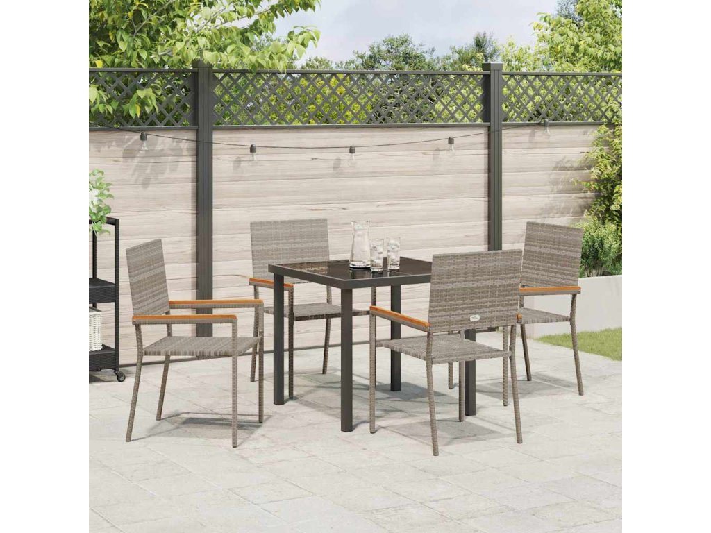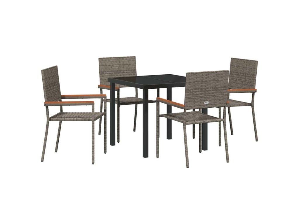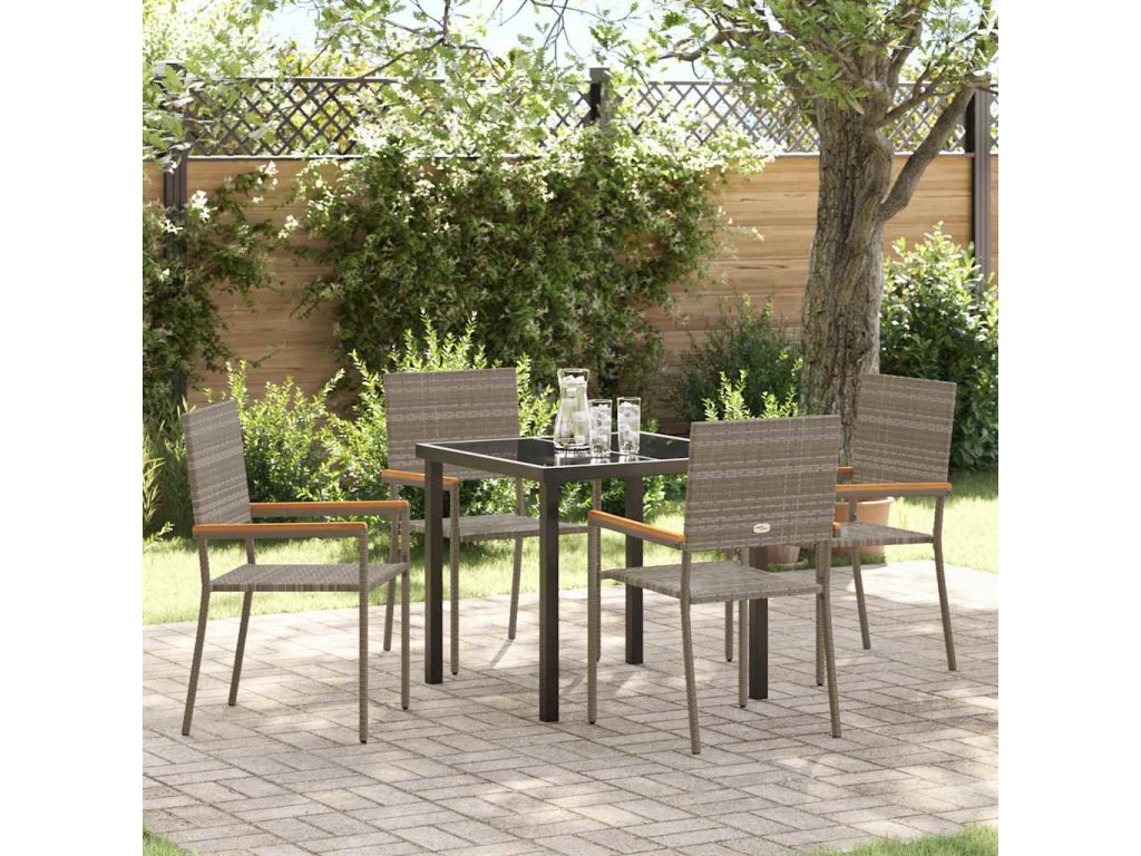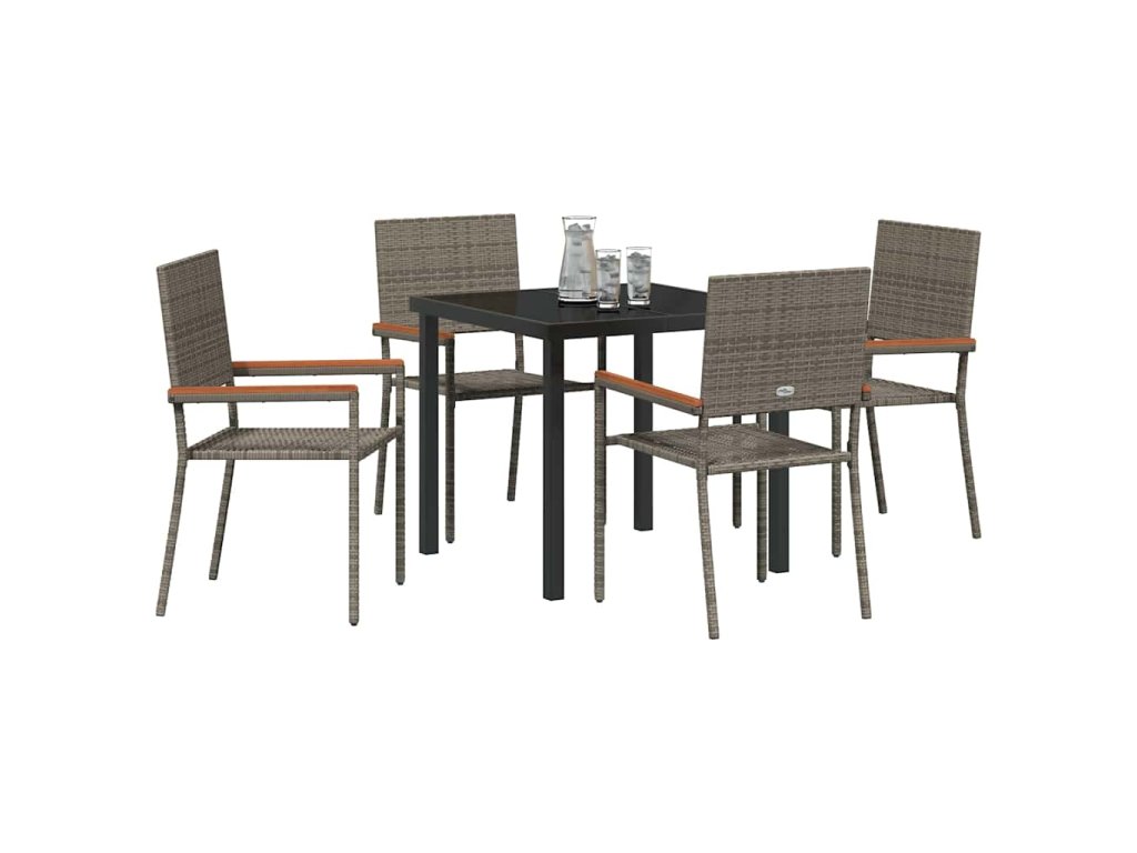 - Součásti: Každý kousek má poly ratanové opěrky, ocelové rámy a tvrzené skleněné desky, což zajišťuje, že všechno vypadá skvěle a dlouho vydrží. Pevné akáciové dřevěné opěrky na ruce dodávají příjemný dotek a pohodlí.
