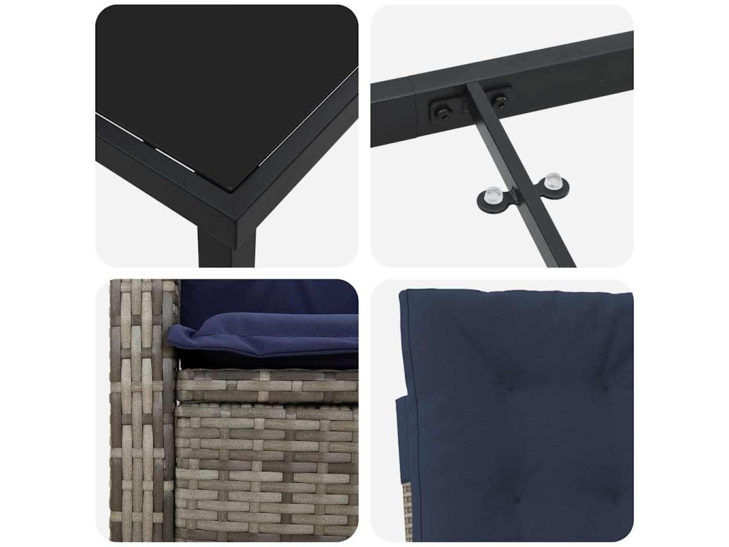 - Kompletní součásti: Stylové šedé opěradla a nohy jsou vyrobeny z kvalitních materiálů, což zajišťuje dlouhou životnost a pohodlí. Pohodlné poly ratanové opěradlo ti zaručí skvelý zážitek ze sezení a nastavitelné opěradlo můžeš upravit podle svého gusta.