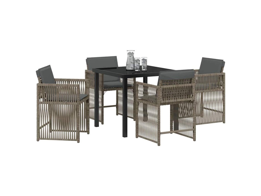 - Součásti: Sada obsahuje elegantní skleněný stůl, suitable for co se snadno čistí po jídle. Má pohodlná opěradla a opěrky z poly ratanu navržené pro lepší oporu během uvolněných večeří. Pevné nohy ti zaručí stabilitu na různých površích, zatímco měkké polyesterové výplně přidávají pohodlí během každého jídla.