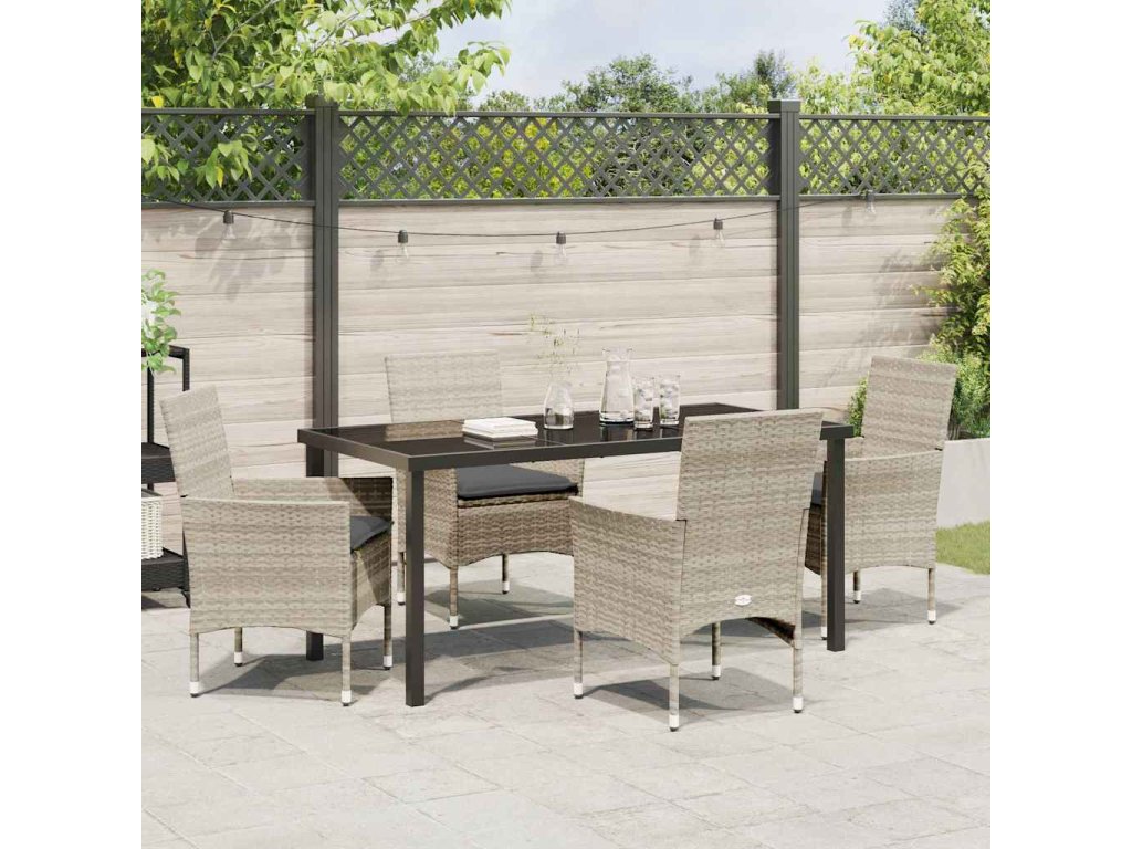Tahle krásná zahradní jídelní souprava je super pro každého, kdo chce svým venkovním prostorům dodat moderní šmrnc. Design je jednoduchý a funkční, ideální pro terasy a zahrady. Souprava vypadá stylově díky své hladké tkané textuře, která skvěle ladí s různými venkovními prostory a vytváří příjemné a lákavé prostředí pro neformální i formální setkání.