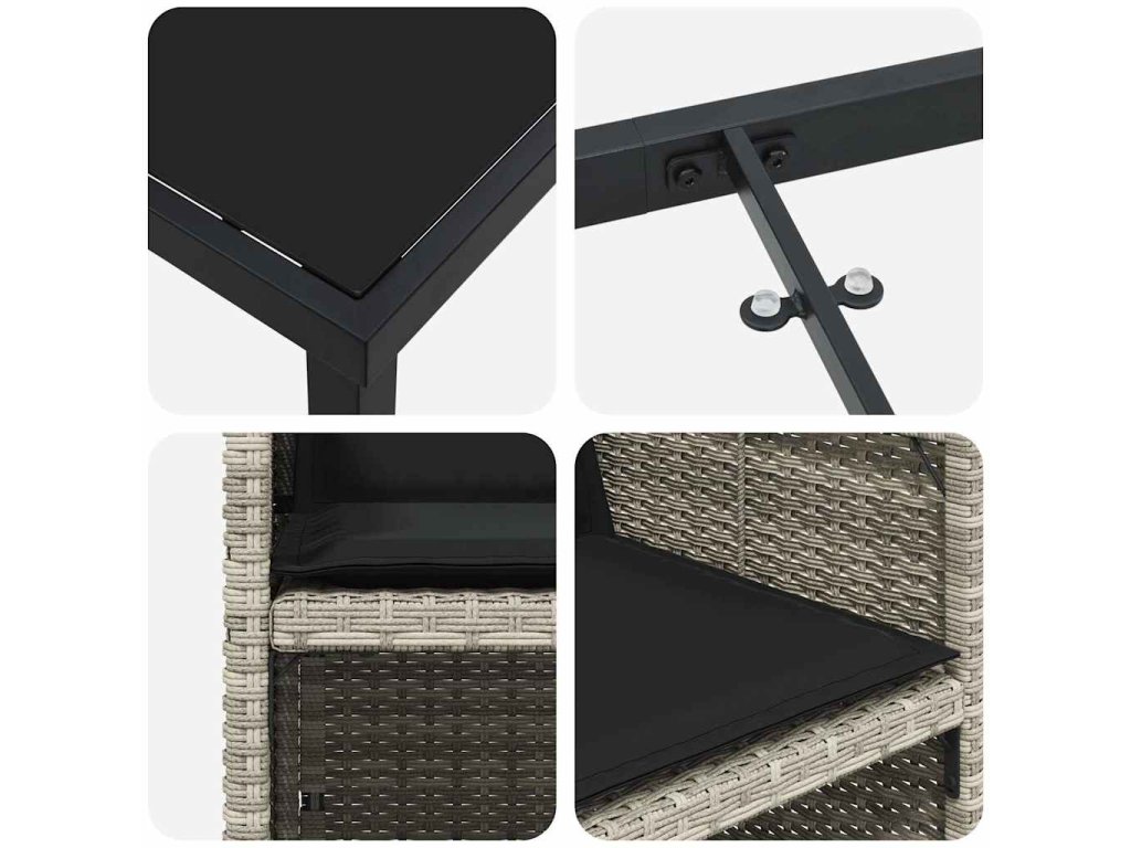 Tento trendy zahradní set posune váš venkovní životní prostor o úroveň výš díky modernímu designu a praktickým funkcím. Je super pro zahrady a terasy, přetváří obyčejná místa na elegantní, relaxační kouty, kde si užijete čas s přáteli a rodinou. Jeho pevná konstrukce a tkaná textura mají nadčasovou eleganci, která se hodí do každého domova.