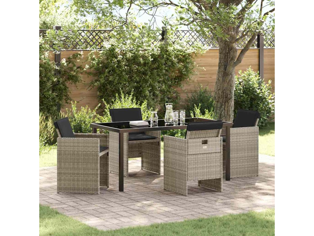 Zahradní jídelní souprava 5 pcs Světle šedá Poly ratan 3379961