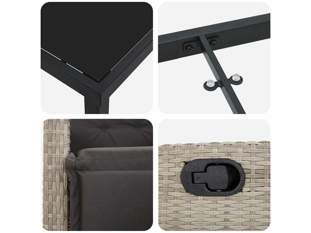 - Všestranný použití: Navržený pro venkovní aktivity, tenhle set povyšuje tvoje setkání na zahradě nebo terase, hodí se jak pro neformální, tak formální příležitosti. Jeho moderní vzhled dodá šmrnc každému prostoru a postará se o pohodlí.