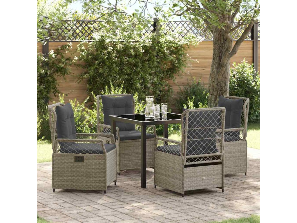 Zahradní jídelní souprava 5 pcs Světle šedá polyratan 3381017