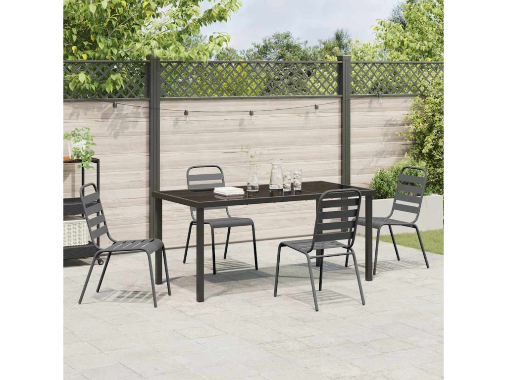 - Hladký povrch z tvrzeného skla: Jídelní set zahrnuje černý tvrzený skleněný povrch, který nabízí hladký, elegantní vzhled. Tento design nejen zvyšuje vizuální přitažlivost, ale také zajišťuje snadné čištění po jídle. Navržen pro pohodlí, skleněný povrch odolává povětrnostním vlivům a poskytuje elegantní jídelní zážitek.