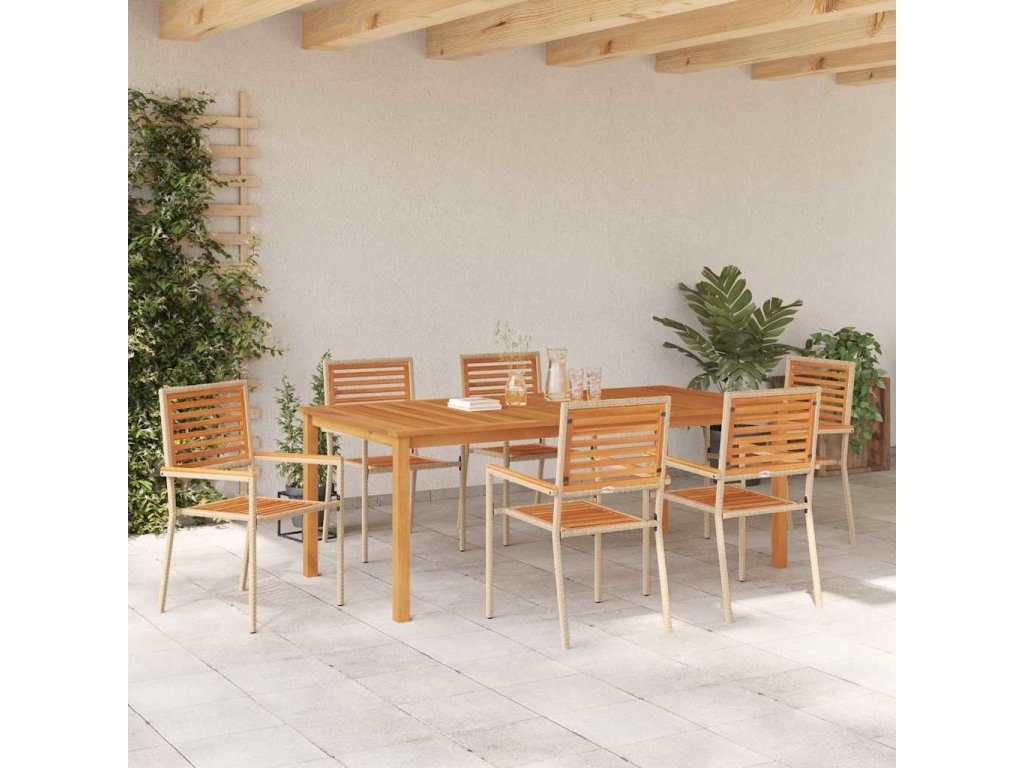 Zahradní jídelní souprava 7 pcs Béžová Poly ratan 3365525