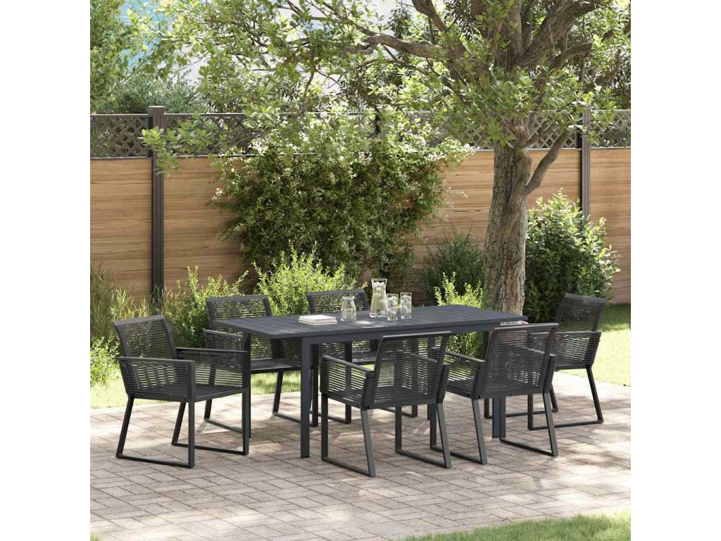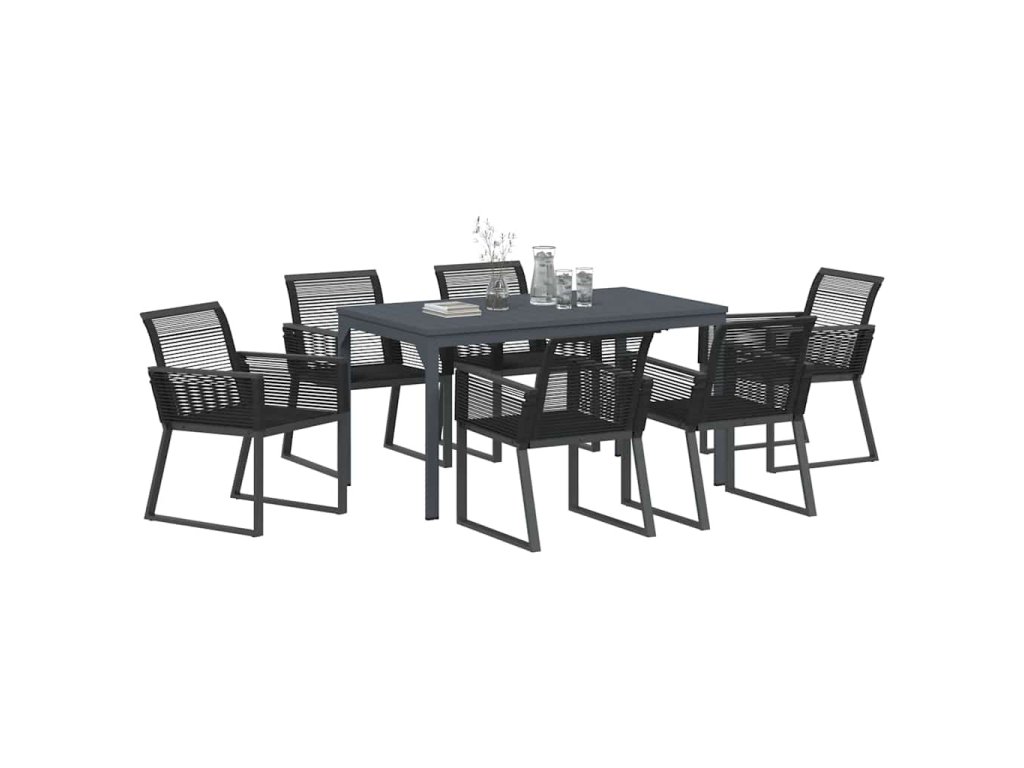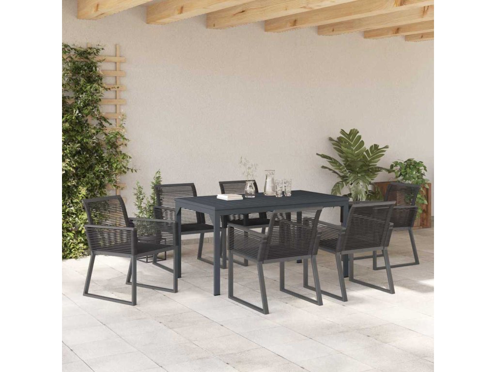 Zahradní jídelní souprava 7 pcs Černá Ocel a poly ratan 3378820