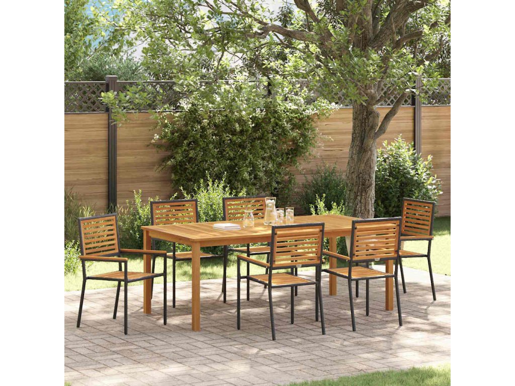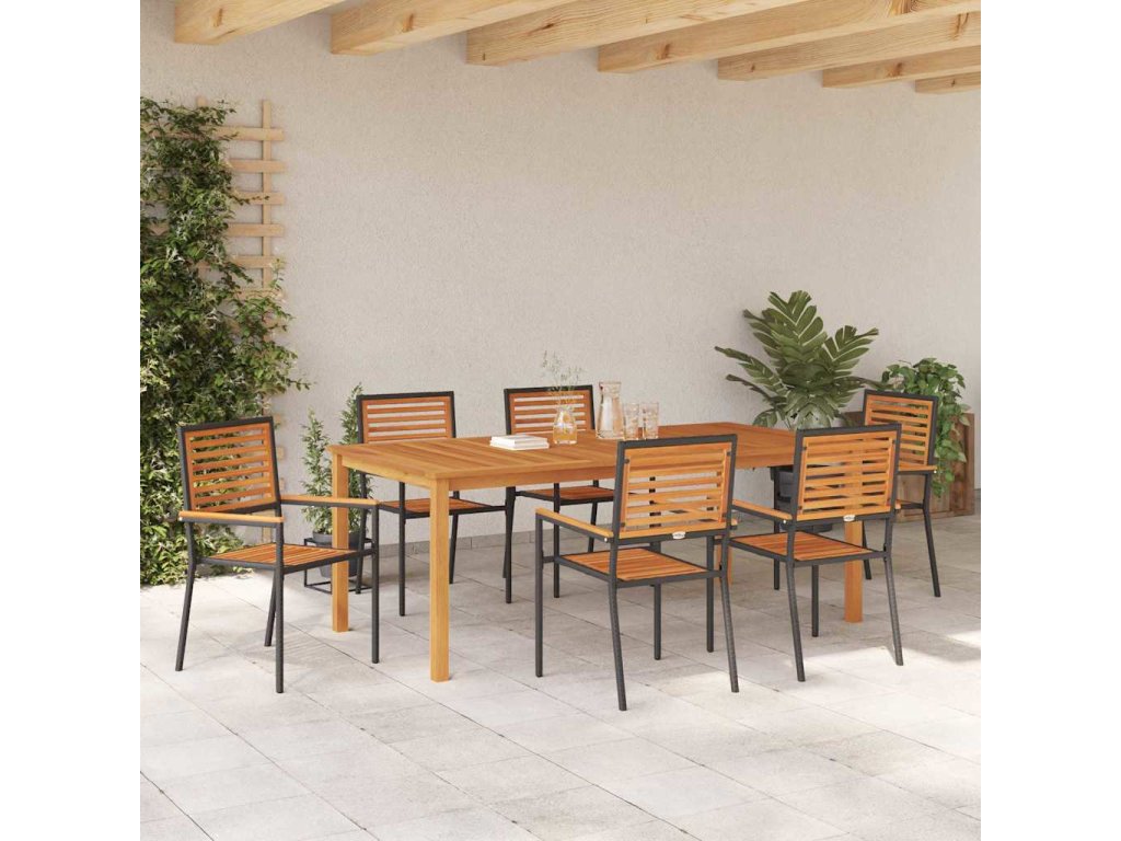 - Zahrnuté komponenty: Set obsahuje pohodlné opěrky na ruce z poly ratanu a pevné práškově lakované ocelové nohy pro odolnost a podporu. Snadno se stohuje, když ho nepoužíváš, ideální pro udržení pořádku, zvlášť při menším prostoru. n