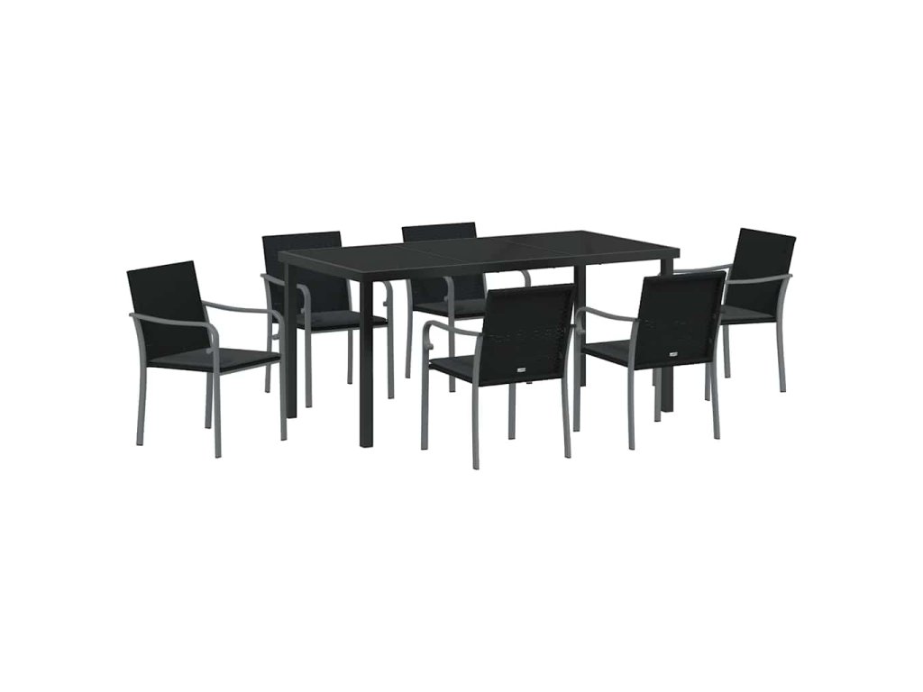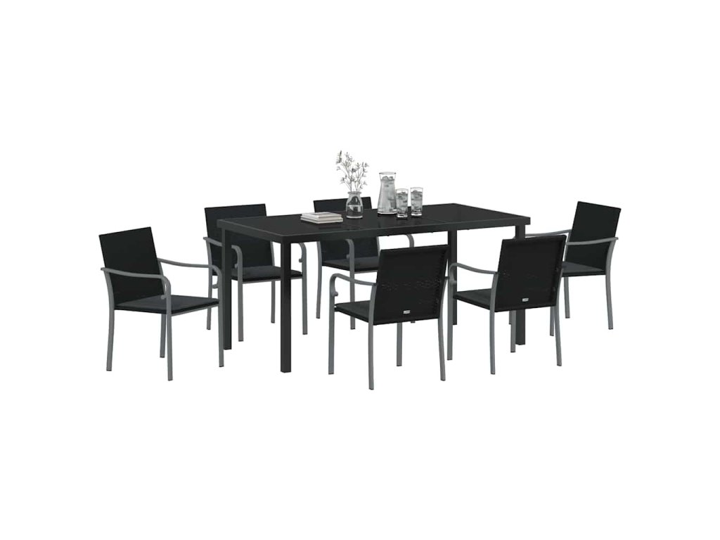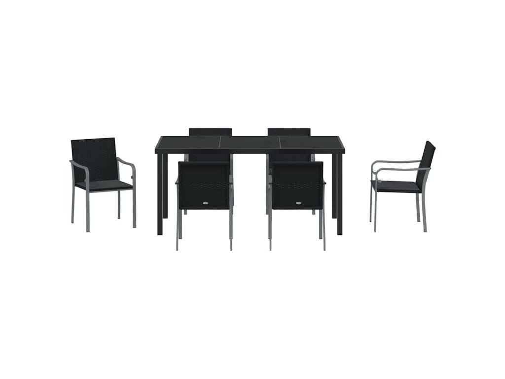 Zahradní jídelní souprava 7 pcs Černá Poly ratan 3379055