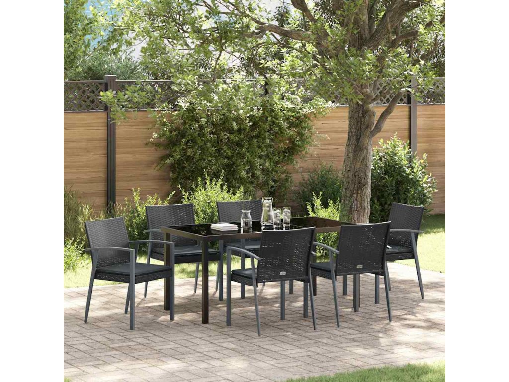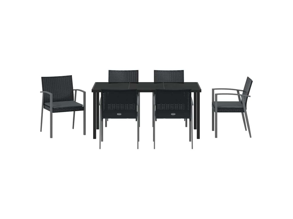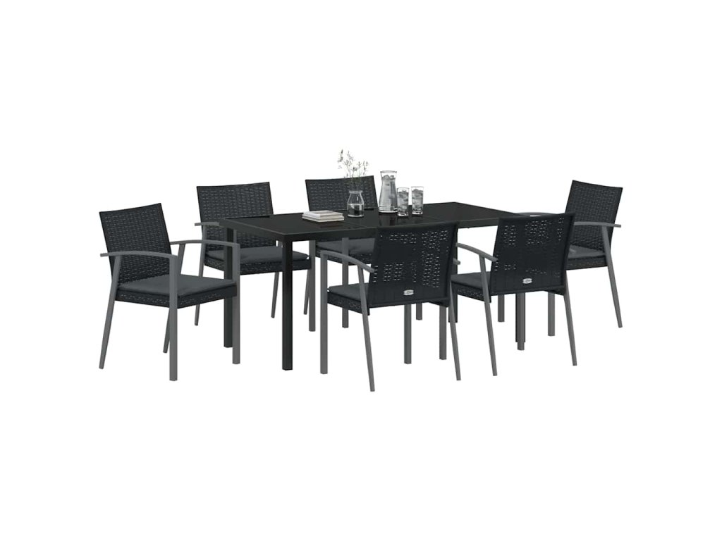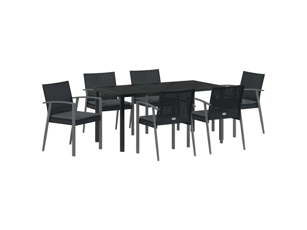 Zahradní jídelní souprava 7 pcs Černá Poly ratan 3379069