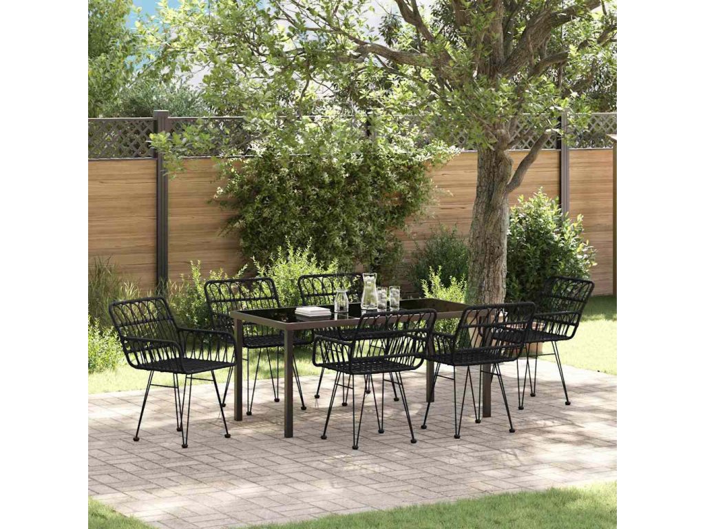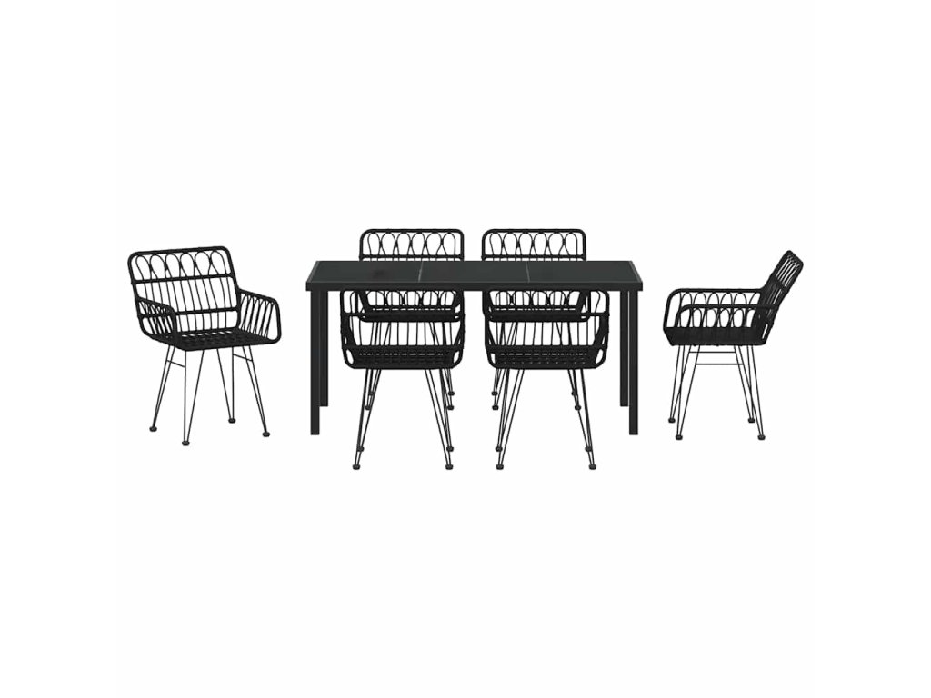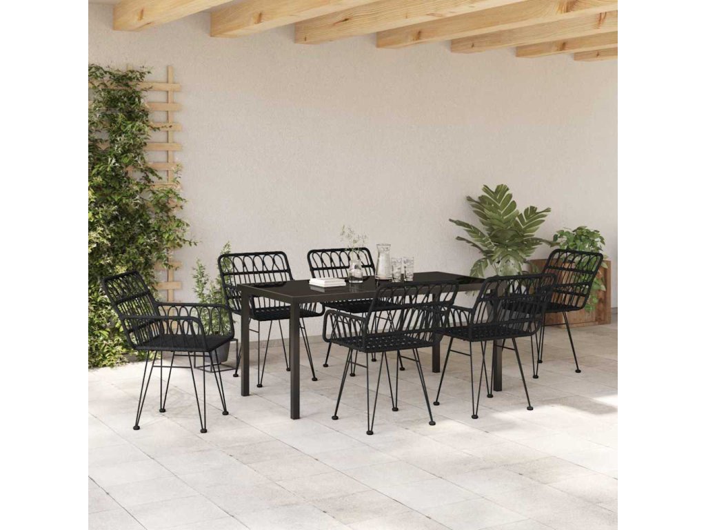 Zahradní jídelní souprava 7 pcs Černá Poly ratan 3379188