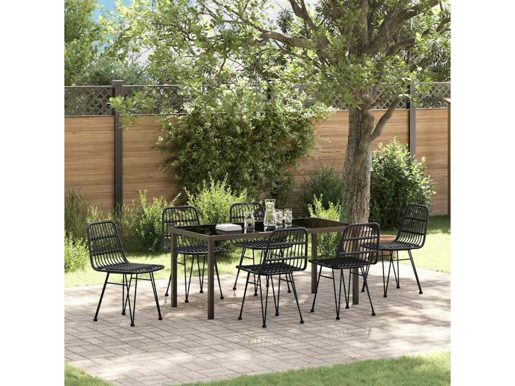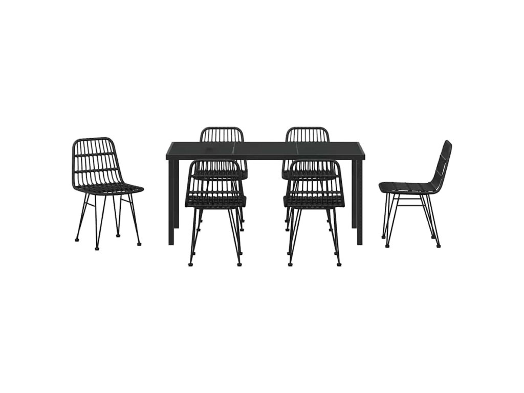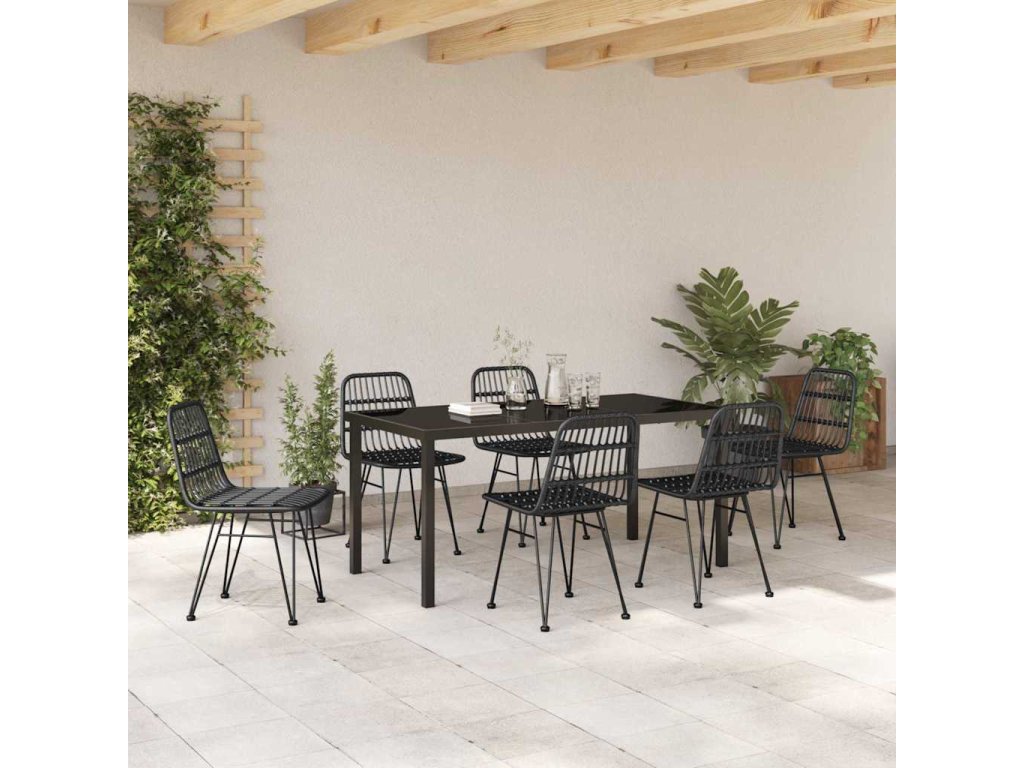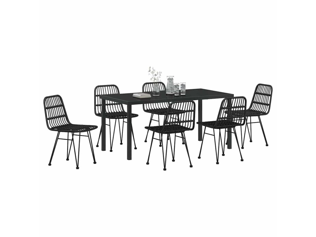 Zahradní jídelní souprava 7 pcs Černá Poly ratan 3379202