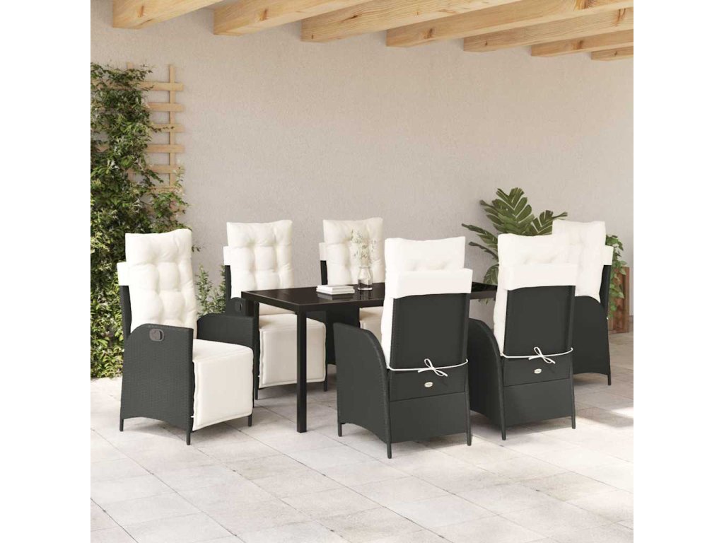 Zahradní jídelní souprava 7 pcs Černá Poly ratan 3380530
