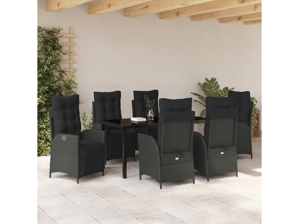 Zahradní jídelní souprava 7 pcs Černá Poly ratan 3380537
