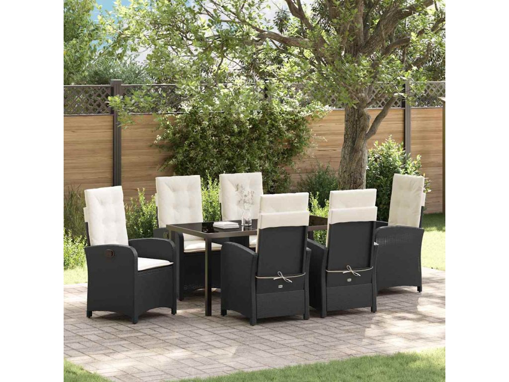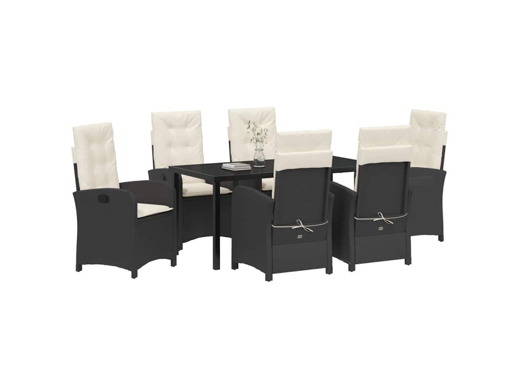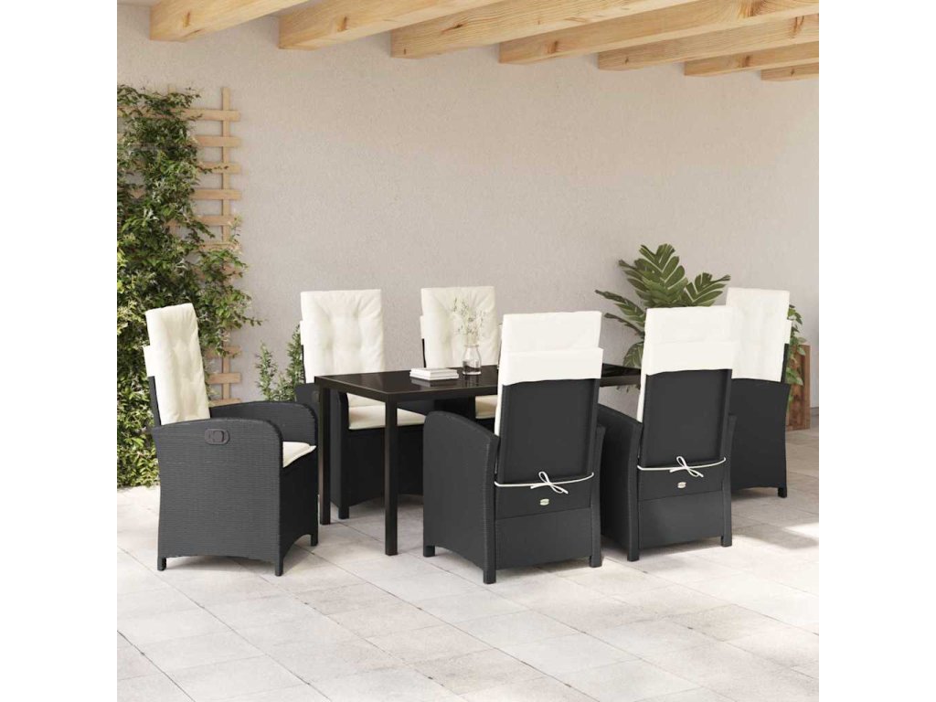 Zahradní jídelní souprava 7 pcs Černá polyratan 3380257