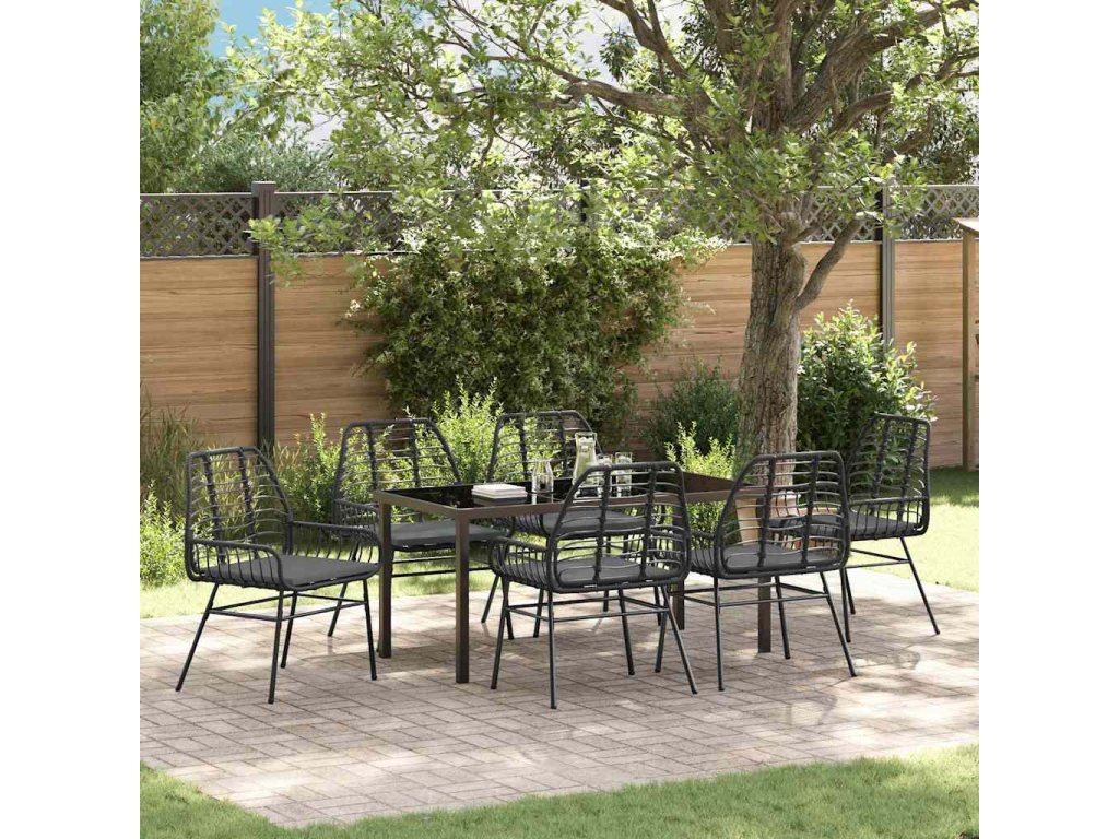 Zahradní jídelní souprava 7 pcs Černá polyratan 3380859