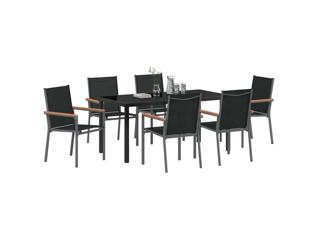 Zahradní jídelní souprava 7 pcs Černá Textilene a ocel 3379090