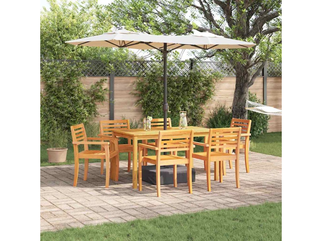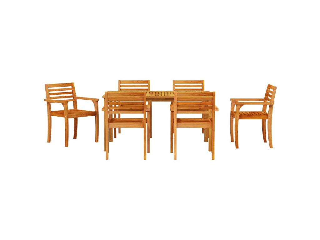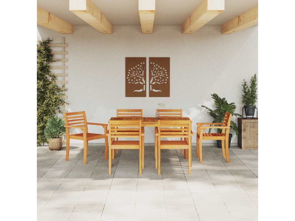 - Materiály: Vyrobeno z masivního akáciového dřeva, tenhle nábytek je odolný a navržený tak, aby vydržel venku. Akácie je známá tím, že odolává hnilobě a rozkladu, což zajišťuje dlouhou životnost. Olejovaný povrch zvýrazňuje přirozenou barvu dřeva, čímž se stává jak funkčním, tak hezkým doplňkem do každé zahrady nebo terasy.