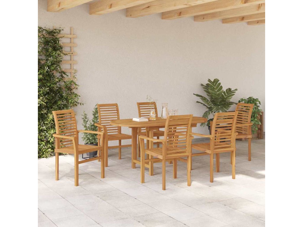 - Pevné nohy: S pevnými teakovými nohami zůstává souprava stabilní i na nerovných plochách. Silná konstrukce znamená méně kývání, takže je každé místo na sezení bezpečné a pohodlné.
