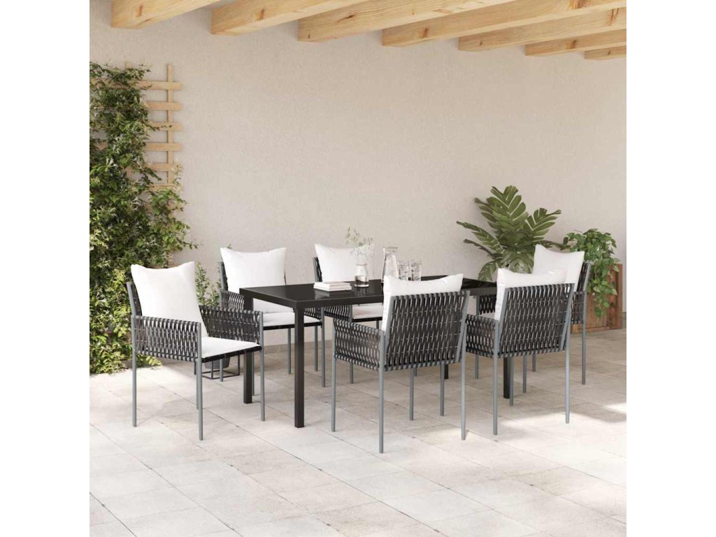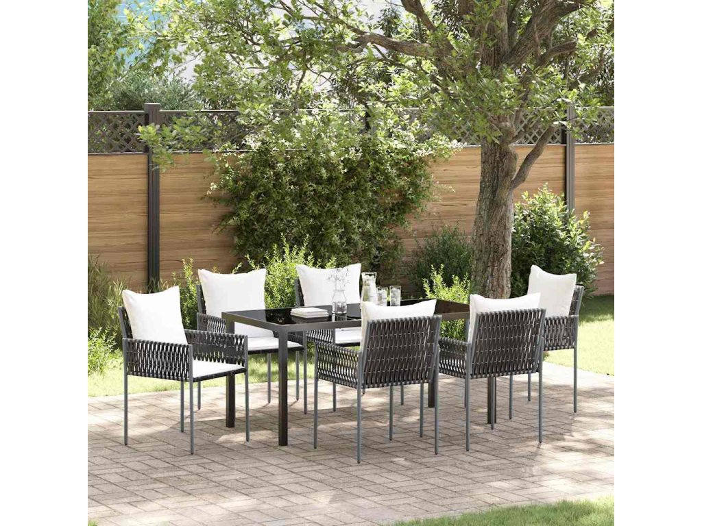 - Odolné materiály: Set kombinuje tkaný poly ratan s práškově lakovanou ocelí, což zajišťuje odolnost a odolnost proti venkovním prvkům. Materiály byly vybírány specificky pro svou odolnost vůči povětrnostním podmínkám, což zaručuje dlouhodobou hodnotu a spolehlivost.