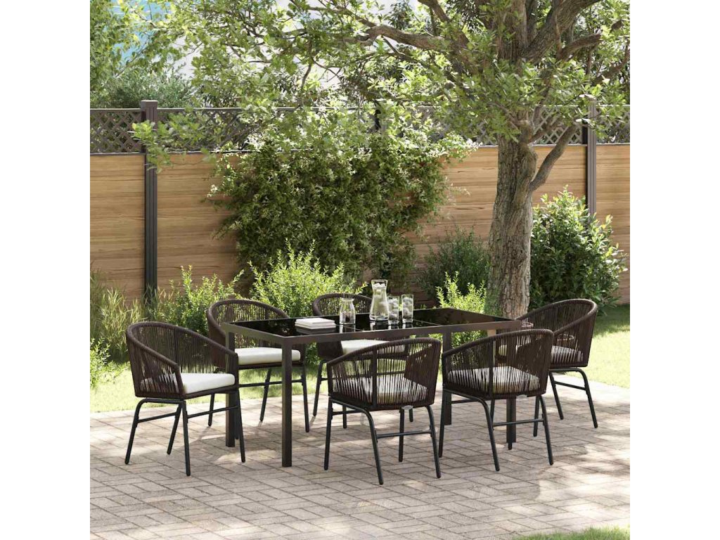 Zahradní jídelní souprava 7 pcs Hnědá Poly ratan 3379356