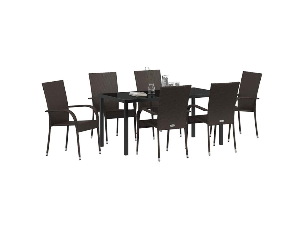 Zahradní jídelní souprava 7 pcs Hnědá Poly ratan 3379398