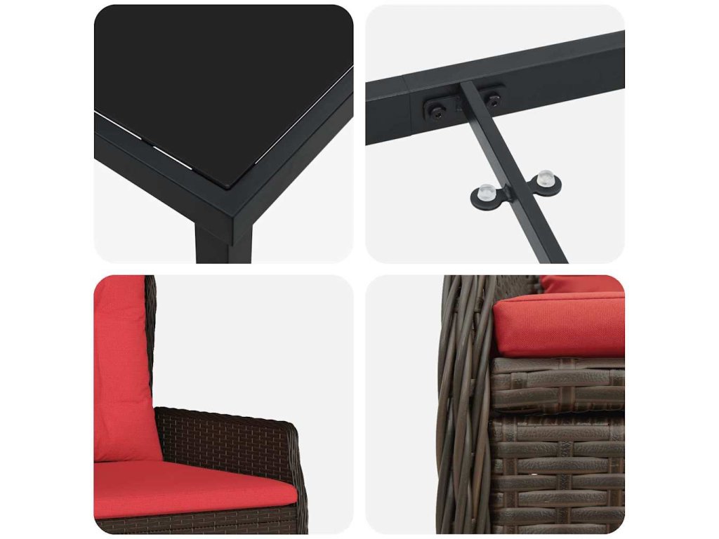 - Univerzální použití: Ideální pro zahrady, terasy a dokonce i kolem bazénů, tenhle set vytváří pohodové místo na jídlo a pokec. Jeho flexibilní styl znamená, že se hodí k různým designovým stylům, ať už máš rád minimalismus nebo něco víc šíleného.