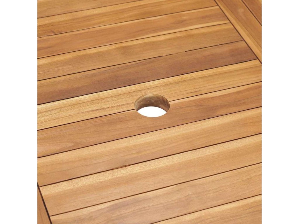 Tato sada zahradního nábytku je ohromujícím venkovním řešením vyrobeným z masivního teakového dřeva. Navržena pro venkovní prostředí, nabízí přírodní povrch, který vylepšuje jakékoli zahradní nastavení. Sada vyvažuje estetické kouzlo s funkčním designem, vytváří harmonické místo pro al fresco jídelní a setkání. Její teplý hnědý tón vybízí k relaxaci, zatímco robustní konstrukce zajišťuje stabilitu a dlouhověkost.