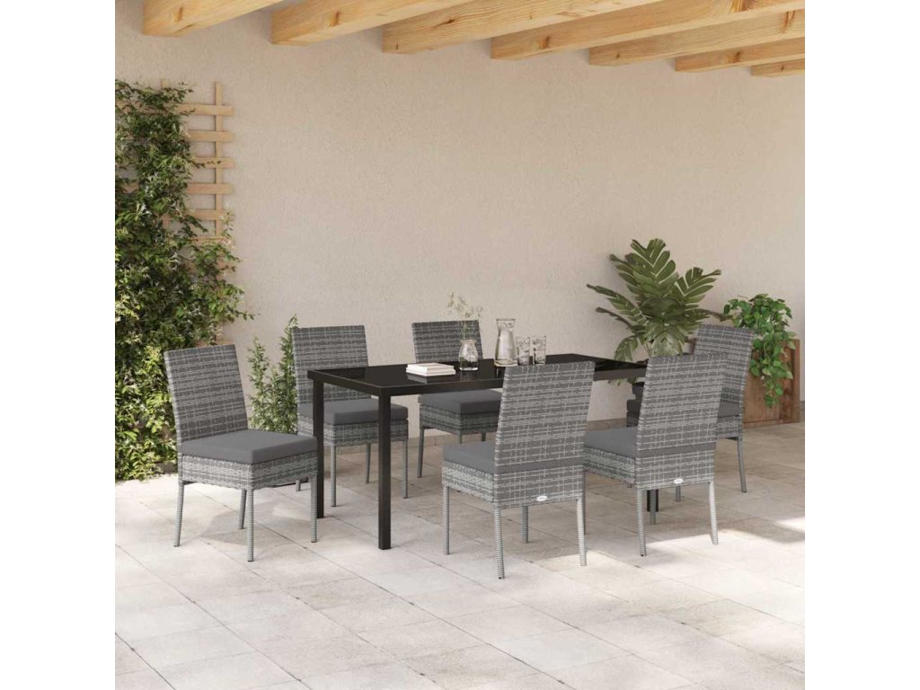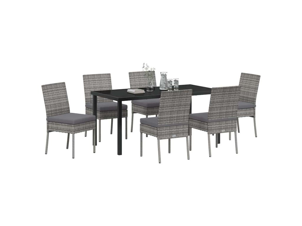 Zahradní jídelní souprava 7 pcs Šedá Poly ratan 3379216