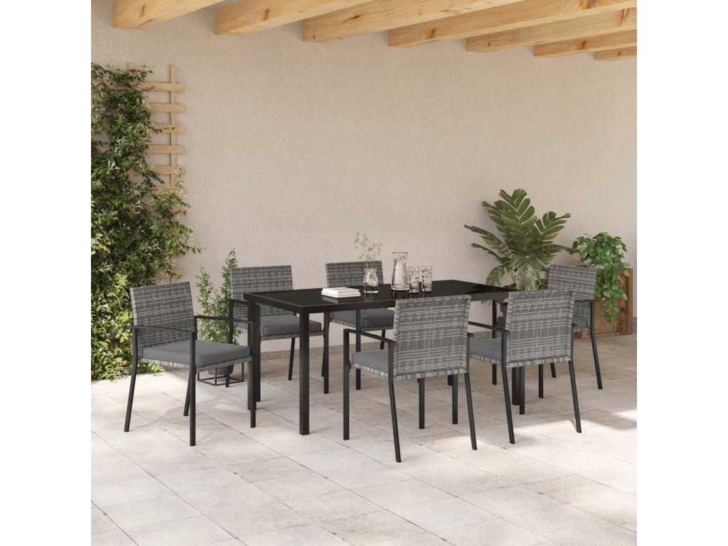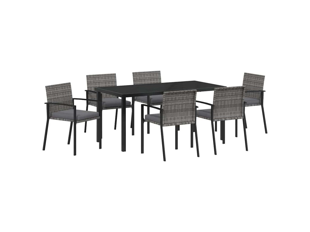 Zahradní jídelní souprava 7 pcs Šedá Poly ratan 3379244