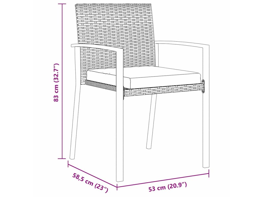 - Pohodlné Sezení Každá židle má pevné poly ratanové opěradlo a polstrované sedáky pokryté polyesterem. Polštáře mají zipy pro snadné sejmutí, když potřebuješ uklidit, akorát to udržuje vše svěží a pohodlné během venkovních party.