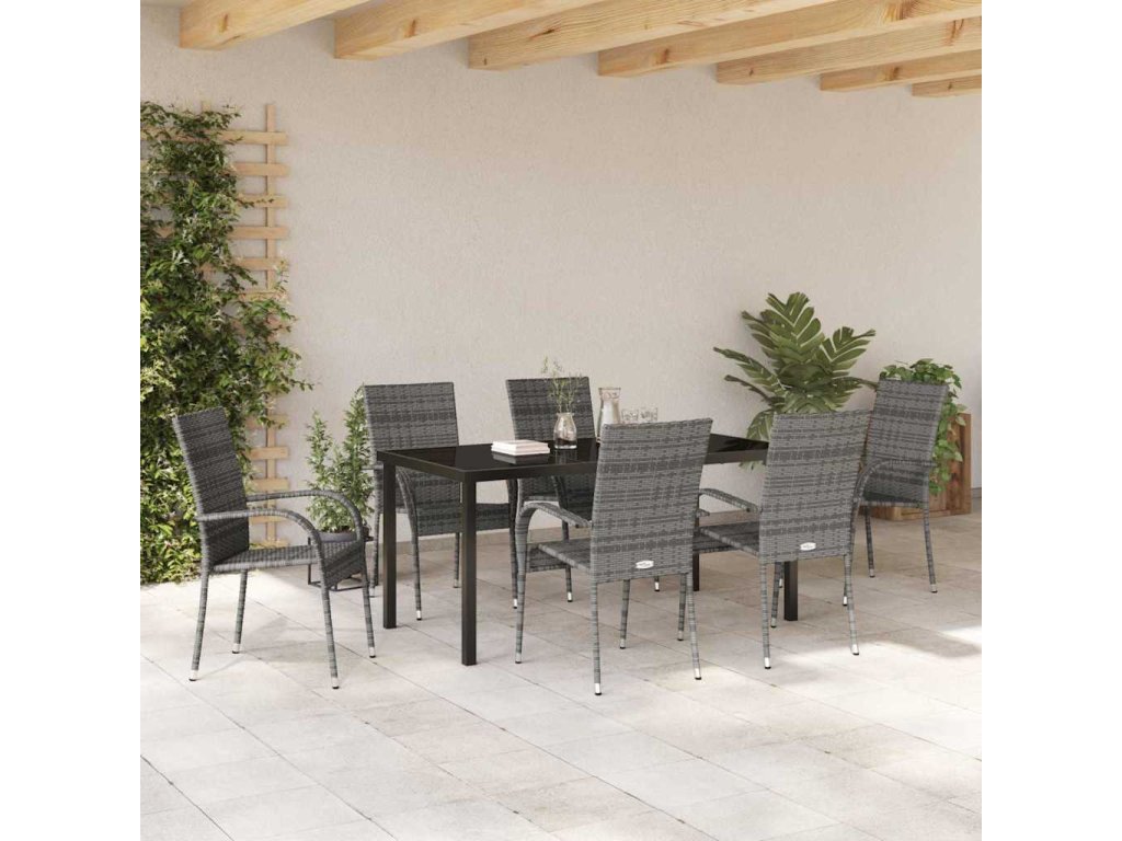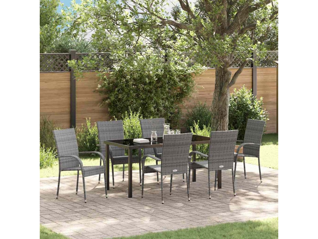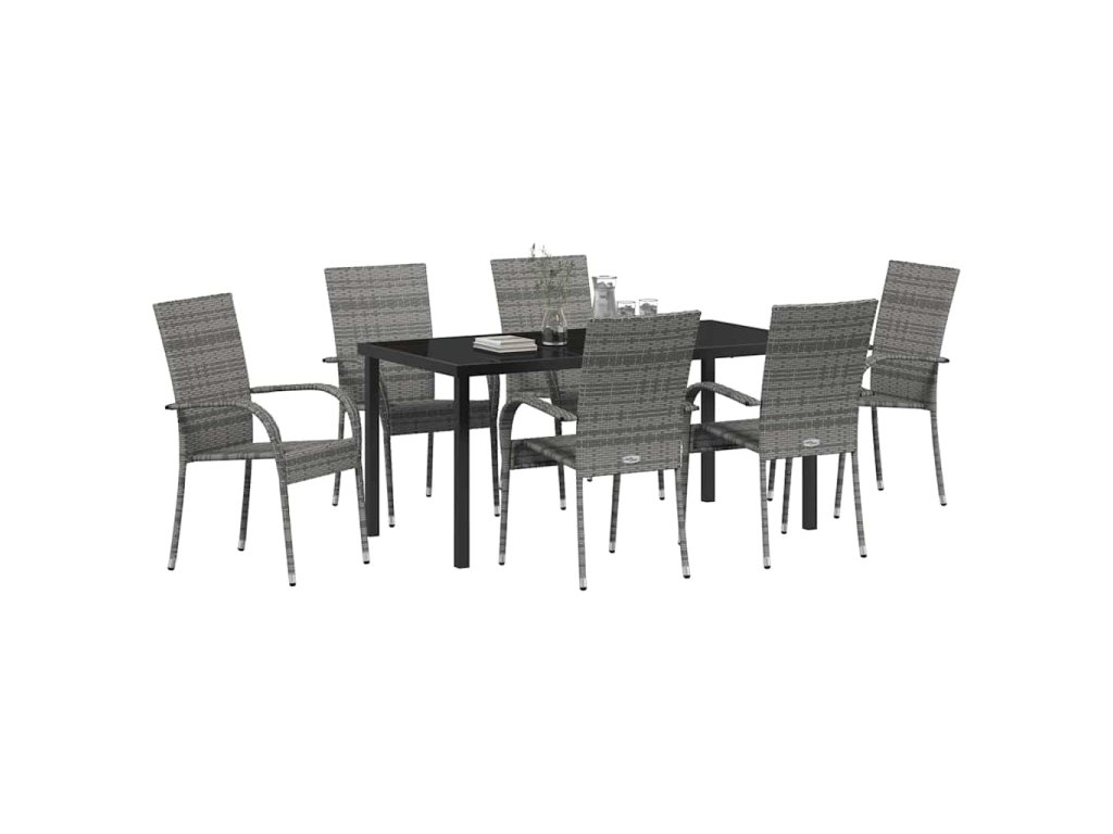 Zahradní jídelní souprava 7 pcs Šedá Poly ratan 3379412