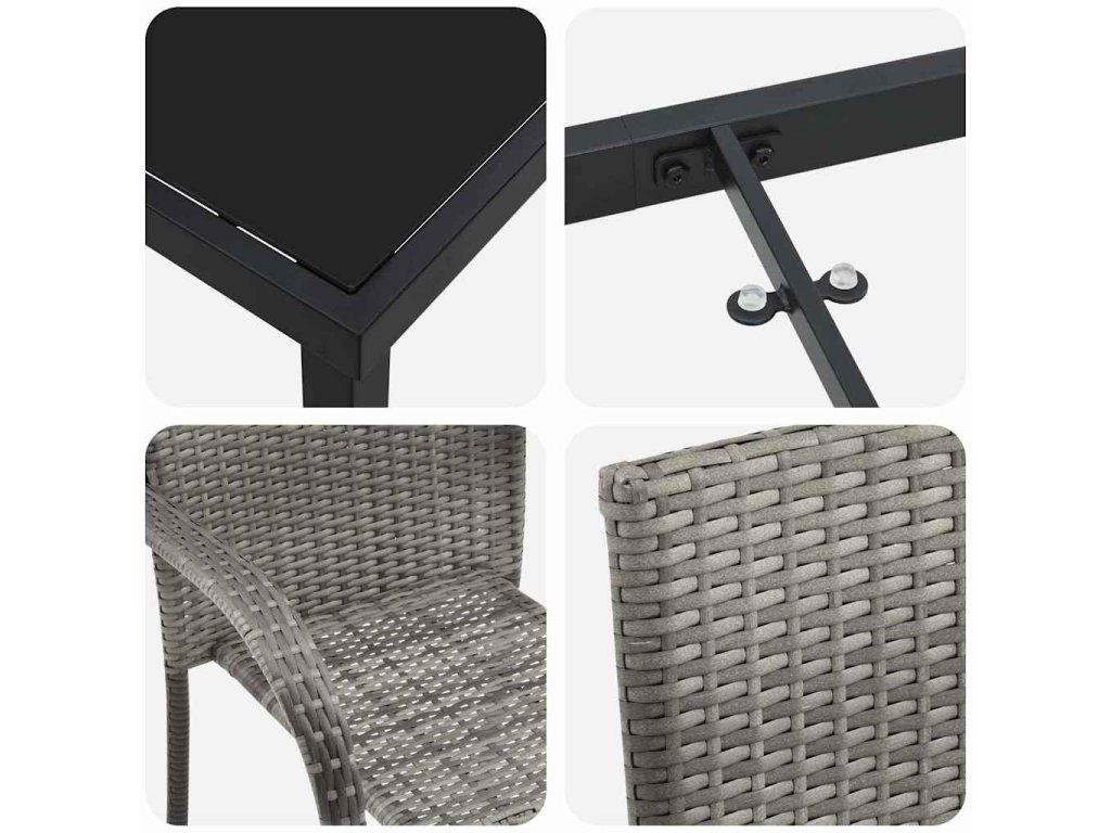 Tahle zahradní nábytková sada přináší moderní eleganci do vašeho venkovního prostoru. Je navržená tak, abyste si mohli pohodlně posedět venku, spojuje styl s praktičností. Moderní vzhled se skvěle hodí na balkóny, terasy nebo do zahrad a dodává jim elegantní atmosféru. Pozvěte kámošky a rodinu a užijte si jídlo, povídání nebo prostě jen relaxaci na slunci nebo pod hvězdami.