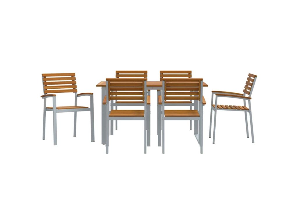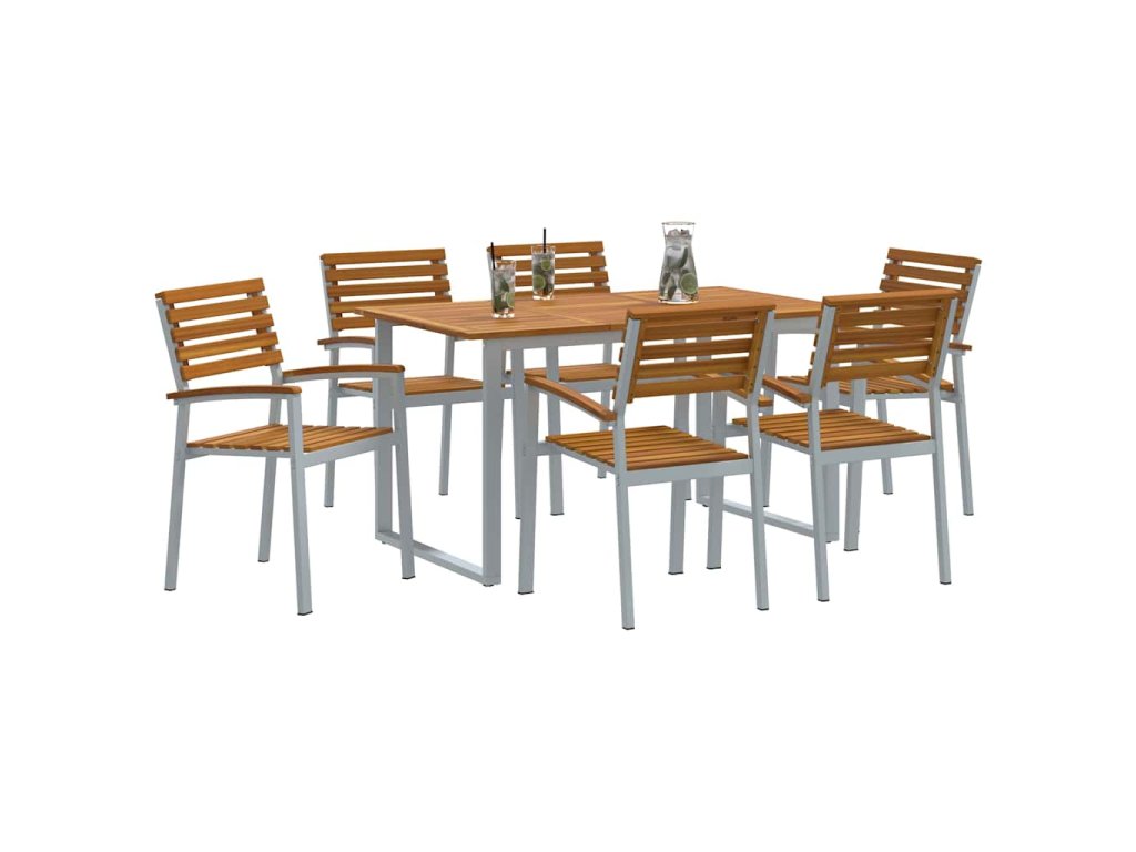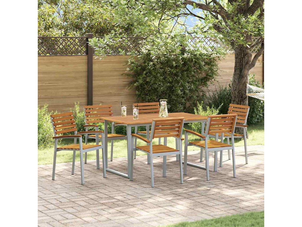 - Odolný design: Pevný a trvanlivý, tenhle jídelní set zvládne venku všechno počasí a stále si zachovává šarm. Materiály byly vybrány tak, aby vydržely nárazy počasí, takže je to chytrá volba pro tvou zahradu.