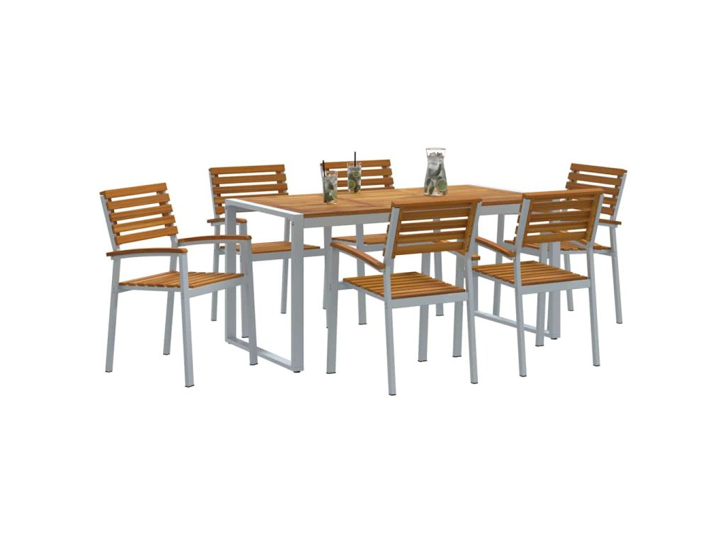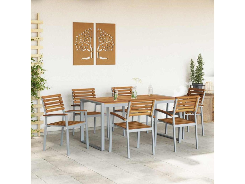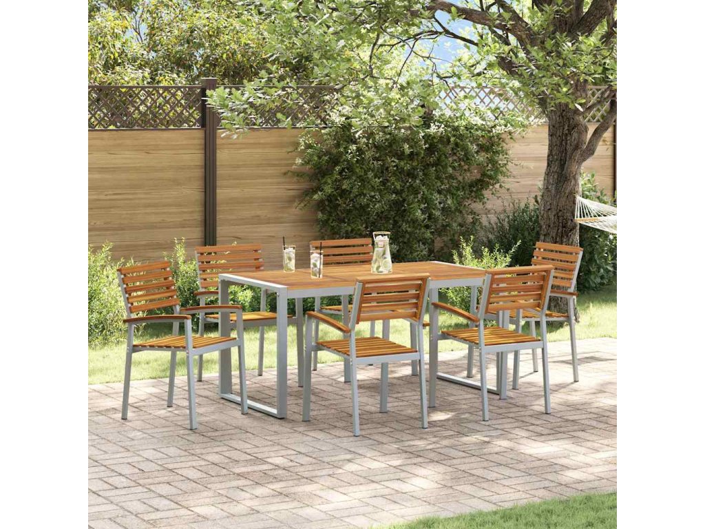 Tenhle dřevěný zahradní jídelní set je skvělý mix moderního stylu a funkčnosti pro venkovní jídlo. Kombinuje masivní akáciové dřevo s železem, což mu dává pevnou a hezkou úpravu, suitable for co se hodí k jakékoliv zahradě nebo terase. Ať už plánuješ klidnou večeři nebo velkou oslavu, tenhle set ti poskytne pohodlné a stylové místo pro jídlo s přáteli a rodinou.