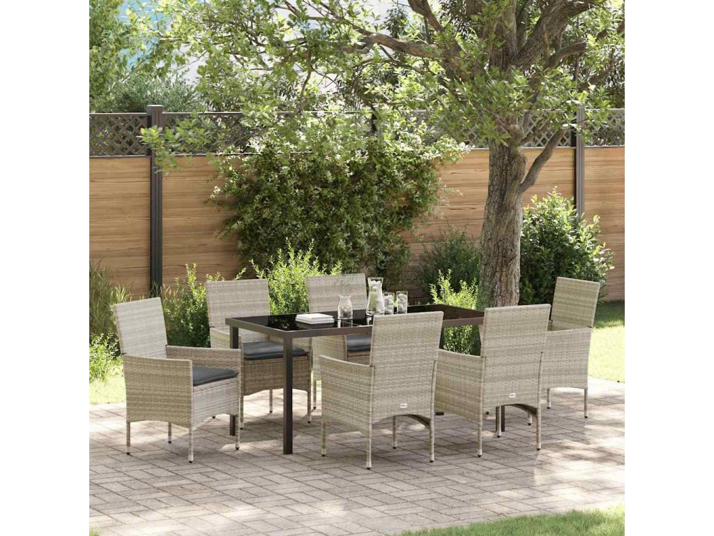 Tahle krásná zahradní jídelní souprava je super pro každého, kdo chce svým venkovním prostorům dodat moderní šmrnc. Design je jednoduchý a funkční, ideální pro terasy a zahrady. Souprava vypadá stylově díky své hladké tkané textuře, která skvěle ladí s různými venkovními prostory a vytváří příjemné a lákavé prostředí pro neformální i formální setkání.