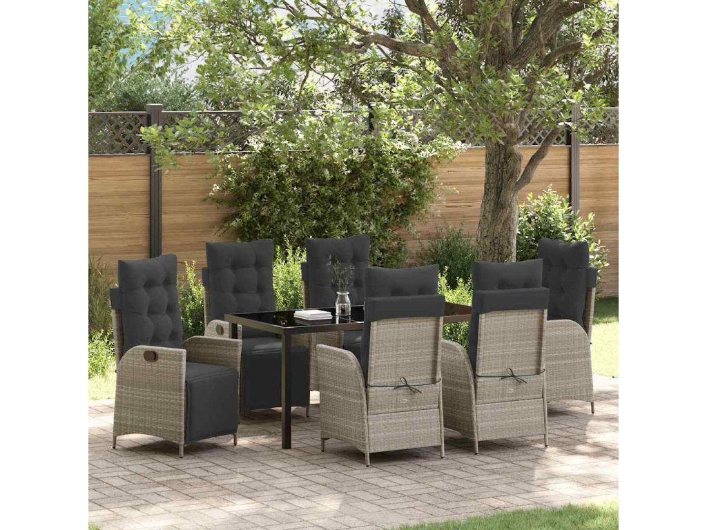 Zahradní jídelní souprava 7 pcs Světle šedá polyratan 3380572