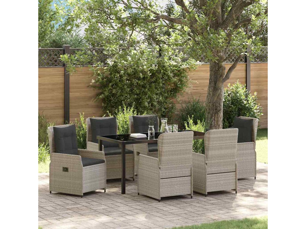 Zahradní jídelní souprava 7 pcs Světle šedá polyratan 3380978