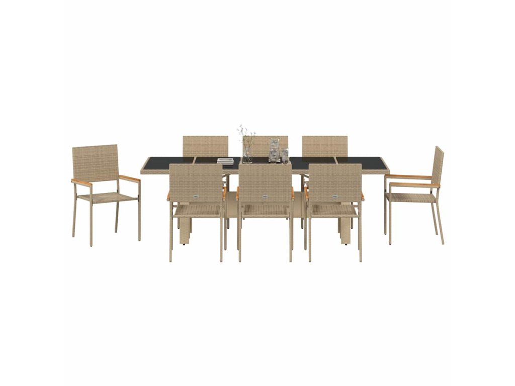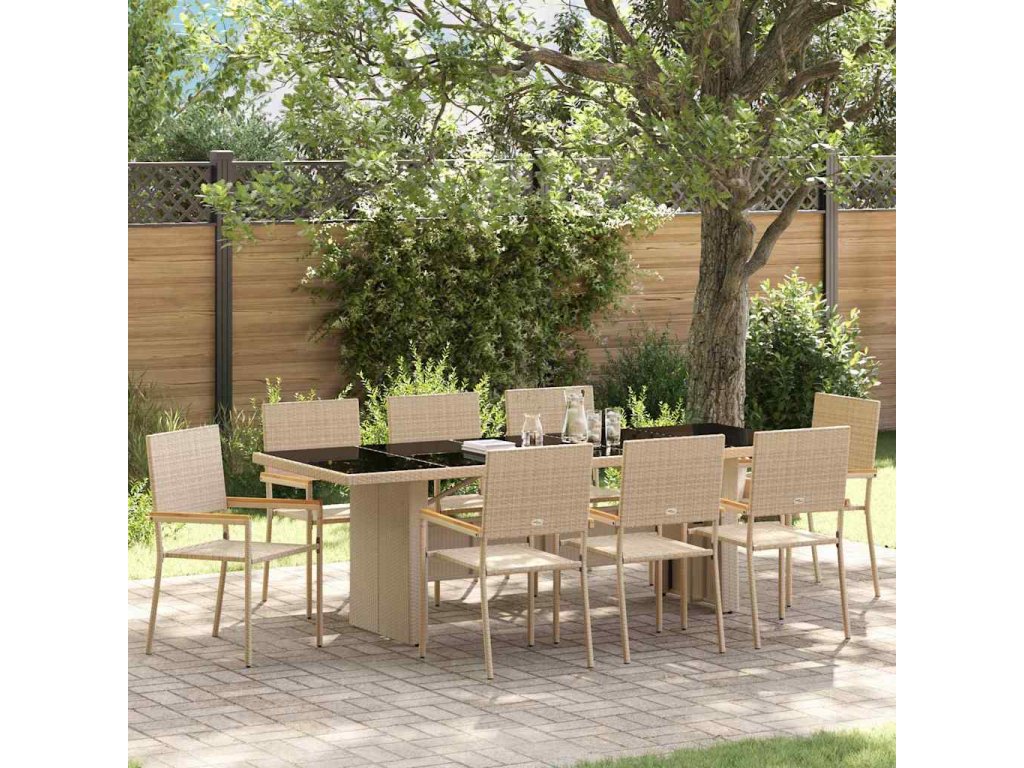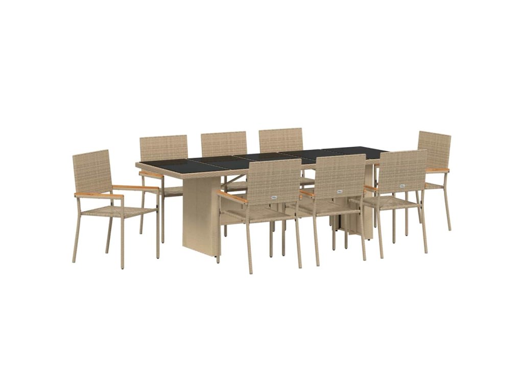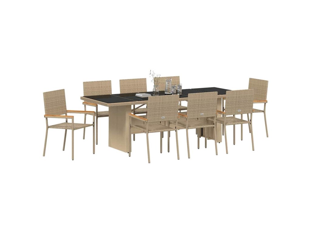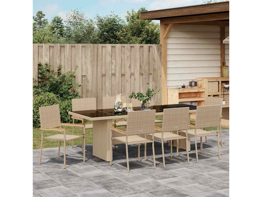 Zahradní jídelní souprava 9 pcs Béžová Poly ratan 3365416