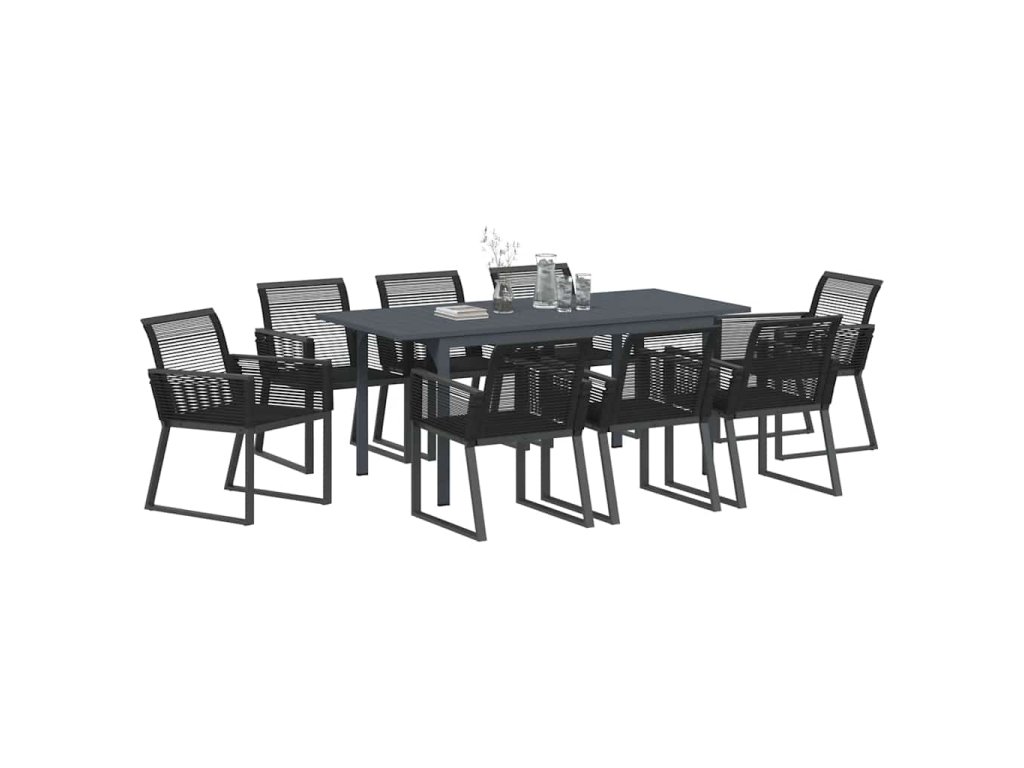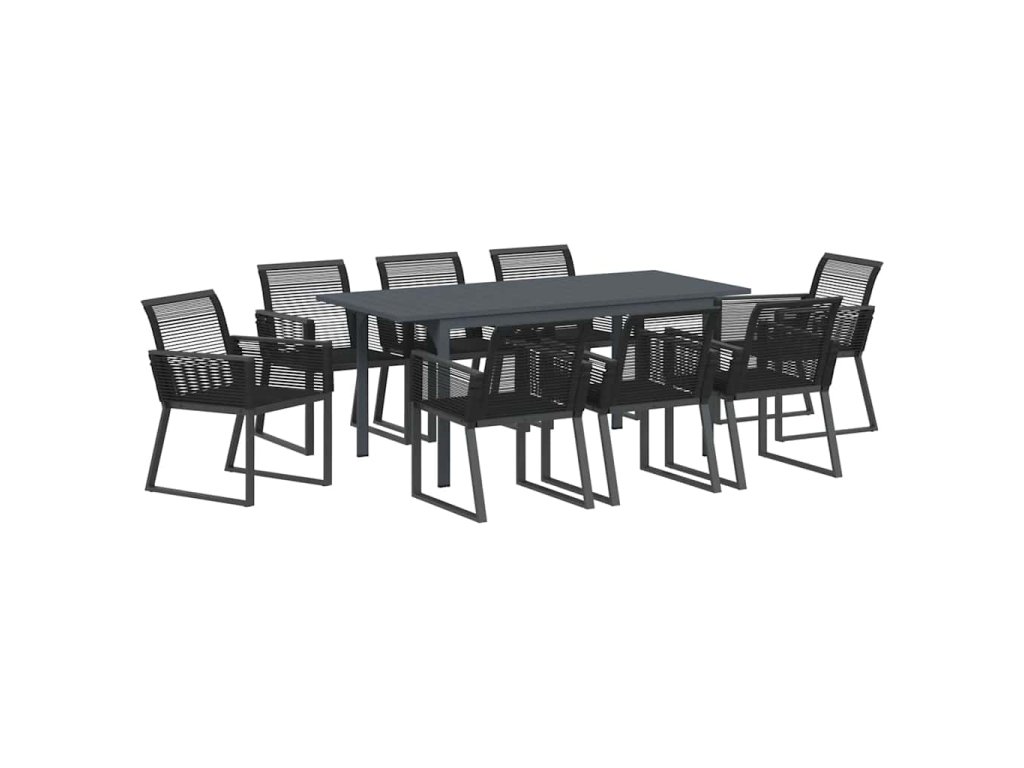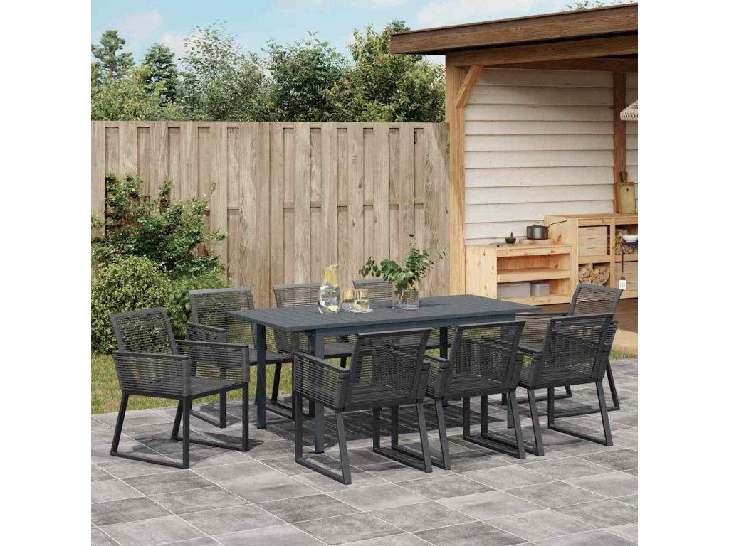 Zahradní jídelní souprava 9 pcs Černá Ocel a poly ratan 3378821