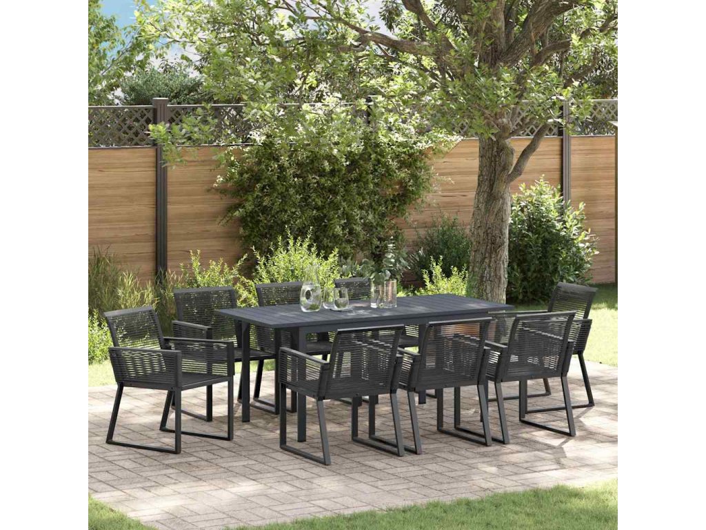 Tahle trendy zahradní jídelní souprava vnese styl do každého venkovního prostoru. Její obdélníkový tvar je o jednoduchosti a praktičnosti, s čistými liniemi a žádnými zbytečnostmi. Pohodlná a lákavá, je ideální na rodinná jídla nebo setkání, vytváří skvělý prostor na relaxaci a užívání si čerstvého vzduchu.