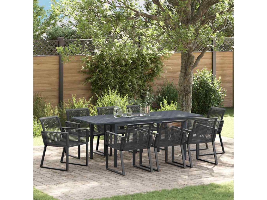 - Součásti: Dodáváno s 8 zahradními židlemi, každá s reprezentativními zády a pohodlnými opěrkami. Rozkládací zahradní stůl nabízí flexibilitu, přizpůsobuje se různým prostředím a počtu hostů s ergonomicky navrženým povrchem, který je ideální pro každodenní jídla a speciální příležitosti.