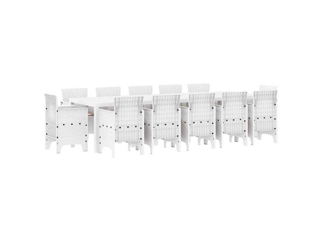 Zahradní jídelní souprava s polštářem 13 pcs Bílá a světle šedá 3378623